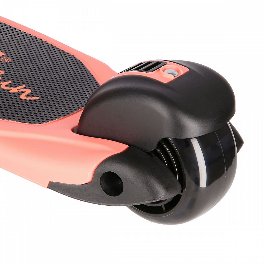 Přední kolečka jsou široká 40 milimetrů a zadní kolečko má šířku 50 milimetrů. Kolečka jsou osazeny ložisky ABEC 7 pro plynulou jízdu a navíc jsou vybavena svítícími LED diodami, které slouží jako zajímavý, vizuální prvek, zvyšují zájem dětí a v neposlední řadě zvyšují viditelnost koloběžky například za šera. Kolečka svítí automaticky během jejich otáčení. Zadní blatník slouží jako nášlapná brzda pro bezpečné zastavení koloběžky.