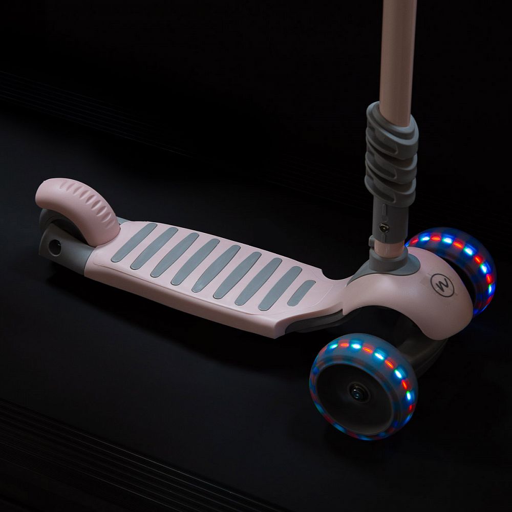 Všechny kolečka v sobě mají ukryty LED diody, které se při pohybu rozsvítí. Svítící kolečka zvyšují viditelnost koloběžky za šera. Všechny kolečka jsou pro plynulý pohyb osazeny ložisky ABEC 7. Široké zadní kolečko zvyšuje stabilitu koloběžky.