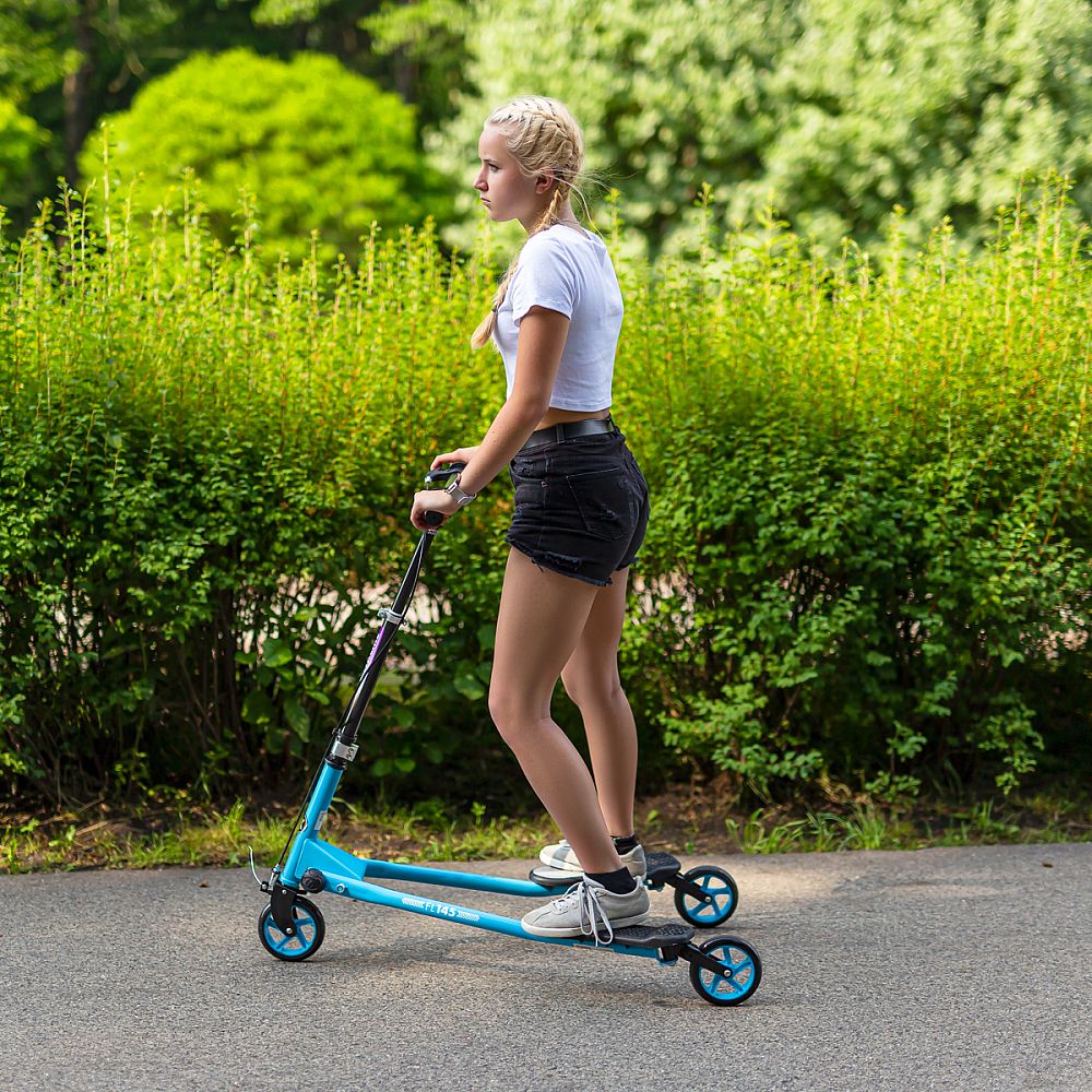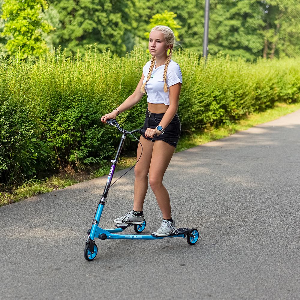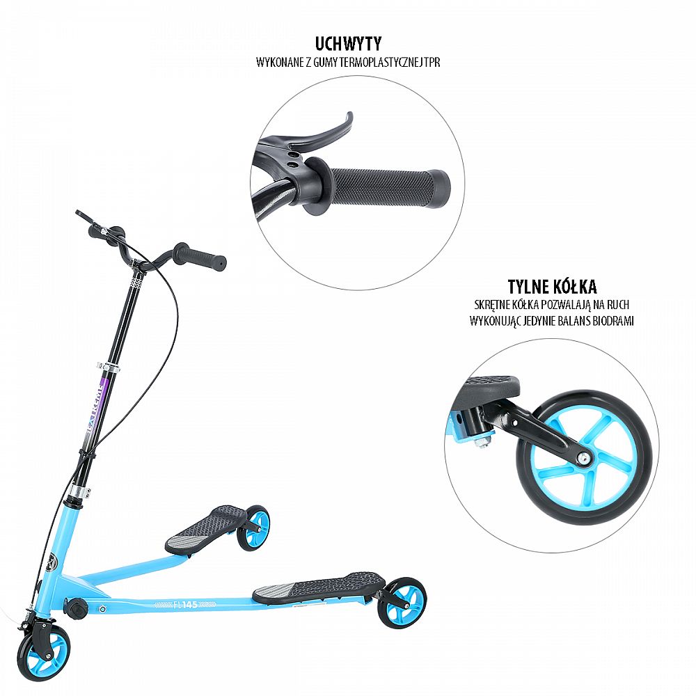 Fliker NILS Extreme FL145 je určen jak pro děti, tak i pro dospělé. Fliker je senzační koloběžka, kterou ženete dopředu rotačním pohybem boků. Jízda na tomto typu koloběžky je zábavná a dostane každého! Ovládání je navíc snadné a dokonale plynulé! Zkušení jezdci dokáží na Flikeru neskutečné triky a dosahují rychlosti až 20 km/h. Navíc, což je možná to nejdůležitější, při jízdě zapojujete všechny svaly těla a tudíž napomáhá zesílení a redukci tuku. Ergonomické rukojeti trojkoloběžky absorbují vibrace a dokonale padnou do ruky! Brzdový systém Grip Brake vám vždy umožní bezpečně zastavit. Bezpečností dorazy zabraňují převrácení koloběžky!