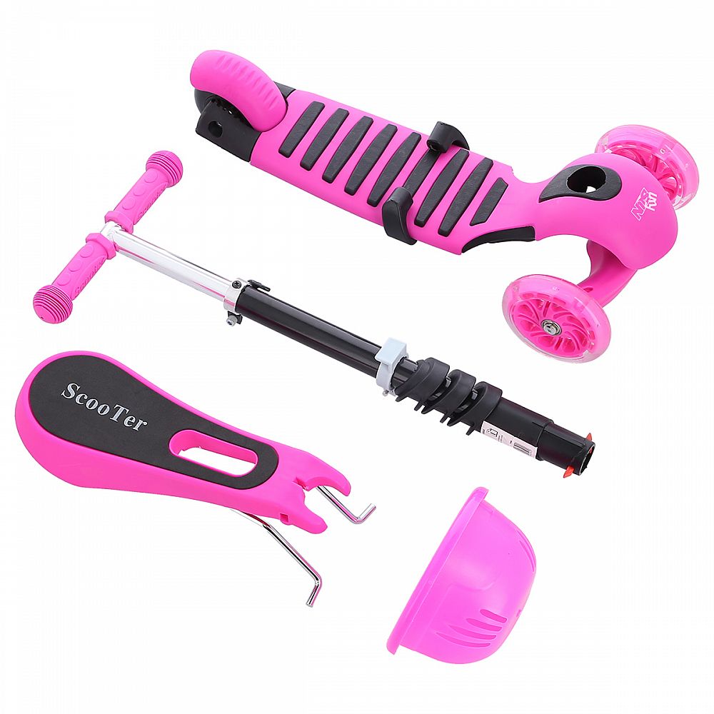Koloběžku získáme po následné demontáži sedátka. Deck je opatřen proužky z tvrdé gumy, které zabraňují zklouznutí nohy ze stupačky. Tři kolečka jsou garancí vysoké stability. Díky řízení pomocí naklápění je koloběžka maximálně bezpečná a nehrozí její převrhnutí. Teleskopická řídítka slouží primárně pro udržení rovnováhy a jsou opatřeny gripy z termoplastické gumy pro jistý úchop. Svítící kolečka jsou osazeny ložisky ABEC5. Zadní kolečko je opatřeno nášlapnou brzdou Flex Fender pro rychlé a bezpečné zastavení. Nosnost koloběžky je 75 kilogramů.