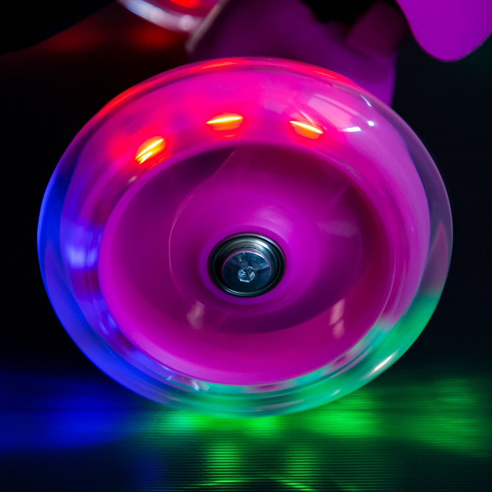 - Kolečka: přední LED PU 120 mm/78A, zadní PVC 90 mm/82A