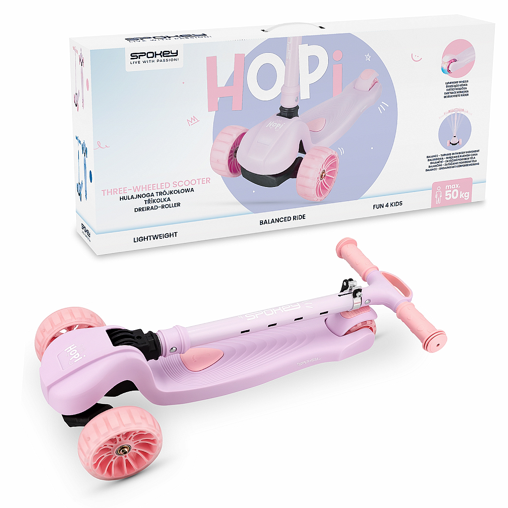 Spokey HOPI Skládací dětská tříkolka se svítícími kolečky, růžová