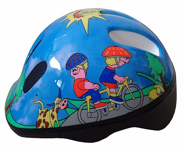 Cyklohelma dětská s potiskem, 6 velkých větracích otvorů, velikost XS (44-48cm), síťka proti hmyzu v přední části helmy, bílý EPS, stahovací pásek se šroubem okolo hlavy pro dokonalé upnutí, velikost XS (44-48 cm), hmotnost helmy je 180 g.