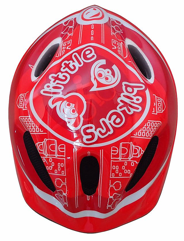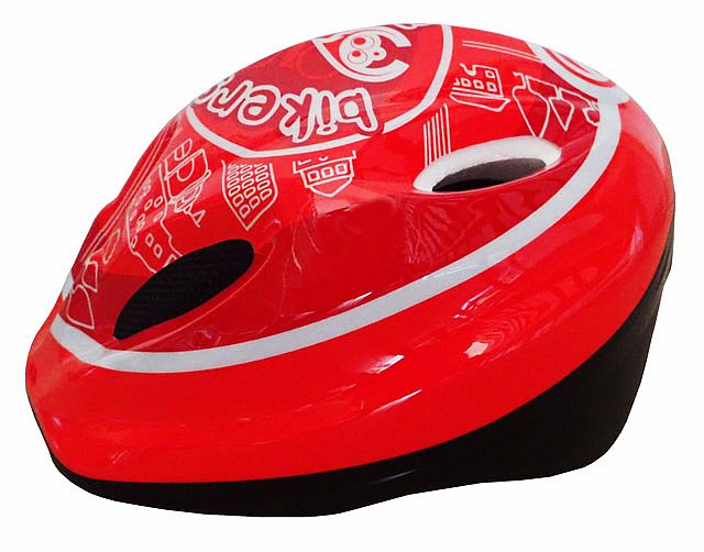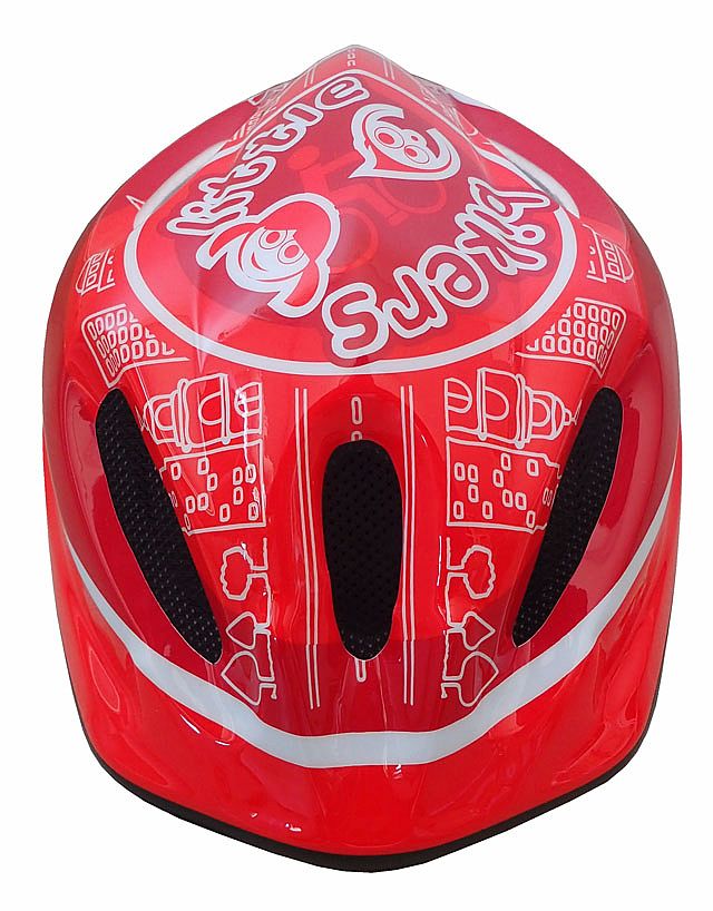 Cyklistická helma dětská s potiskem, 5 velkých větracích otvorů, síťka proti hmyzu, měkká výplň s chladivými účinky uvnitř helmy, stahovací pásek se šroubem okolo hlavy pro dokonalé upnutí, velikost S (48-52 cm), hmotnost 210 g.