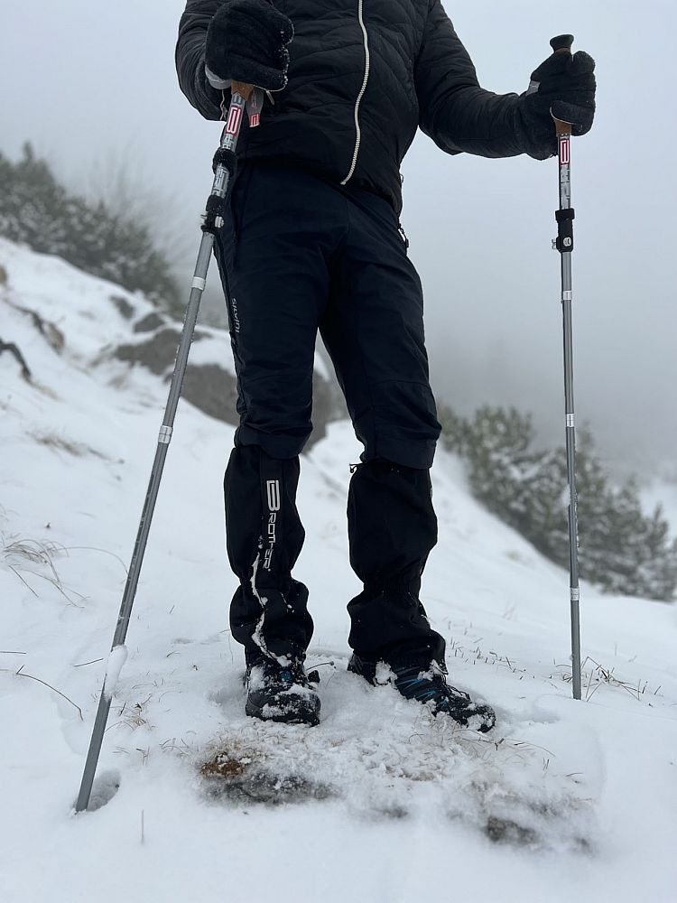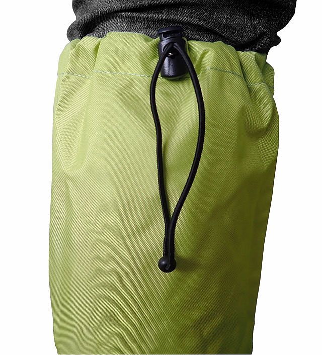 - Návlek je na spodní straně vybavený stahovacím polyamidovým páskem s plastovou přezkou na upevnění návleku pod botami proti vyhrnování při chůzi těžkým terénem. Pro chůzi v lehčím terénu je návlek vybavený pro rychlé a jednoduché upevnění na šněrovadlo bot mosazným háčkem. Díky pružným gumám a stahovací šňůře na lýtku je návlek dodávaný v jedné universální velikosti.