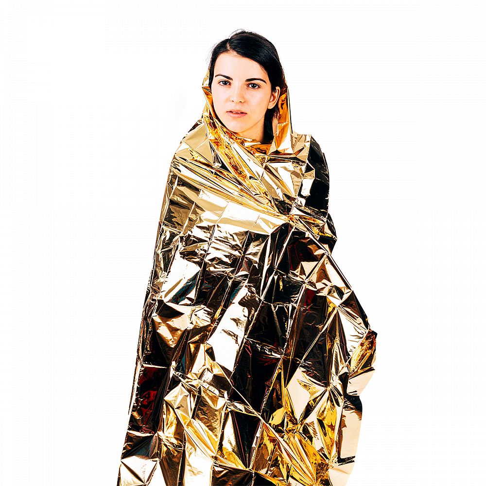 - zlatou stranou ven (stříbrnou dovnitř) pokud potřebujeme postiženého udržet v teple, předejít podchlazení, ochránit před studeným počasím, větrem, deštěm.