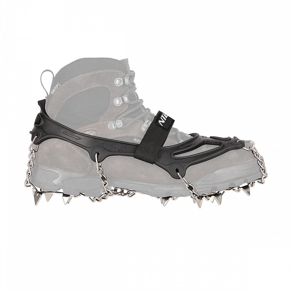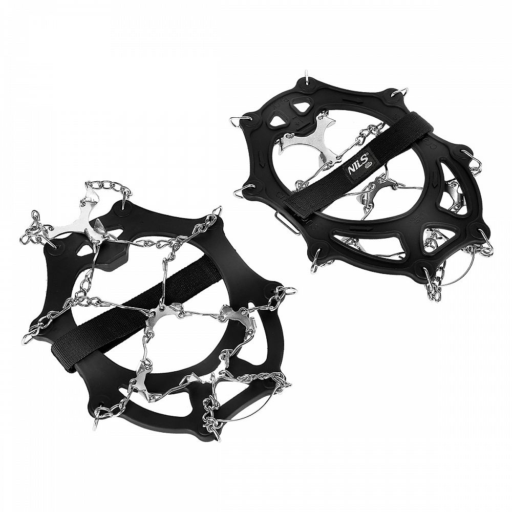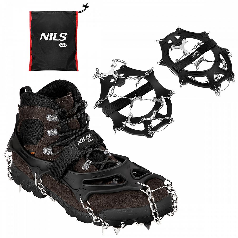 NILS Camp NC1715 jsou řetězové nesmeky - protiskluzové návleky na boty, které poskytují skvělou přilnavost na kluzkém povrchu pokrytém ledem nebo blátem. Jsou také ideální na náročnou, horskou turistiku a nebo na zledovatělné chodníky v městě. NC1715 se velmi snadno nasazují, takže výrobek je určen všem bez rozdílu věku.