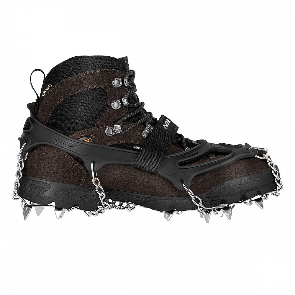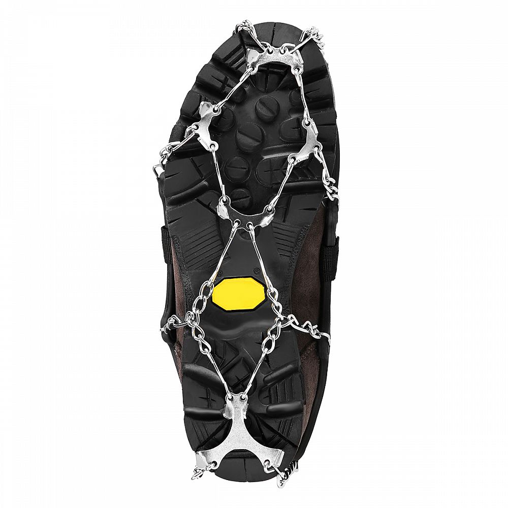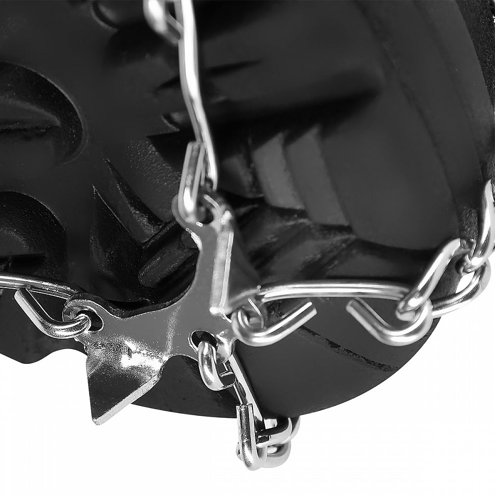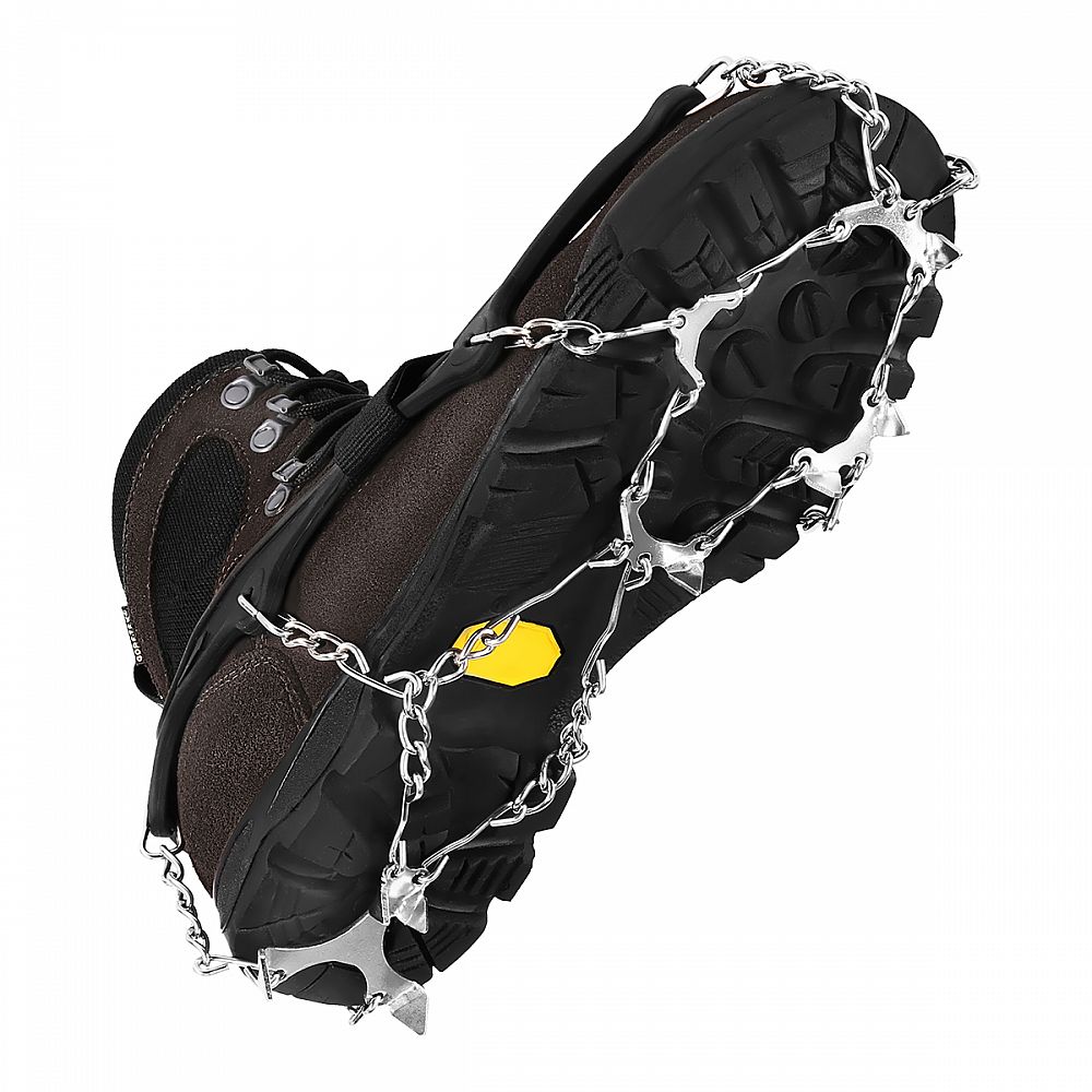 NILS Camp NC1715 jsou řetězové nesmeky - protiskluzové návleky na boty, které poskytují skvělou přilnavost na kluzkém povrchu pokrytém ledem nebo blátem. Jsou také ideální na náročnou, horskou turistiku a nebo na zledovatělné chodníky v městě. NC1715 se velmi snadno nasazují, takže výrobek je určen všem bez rozdílu věku.