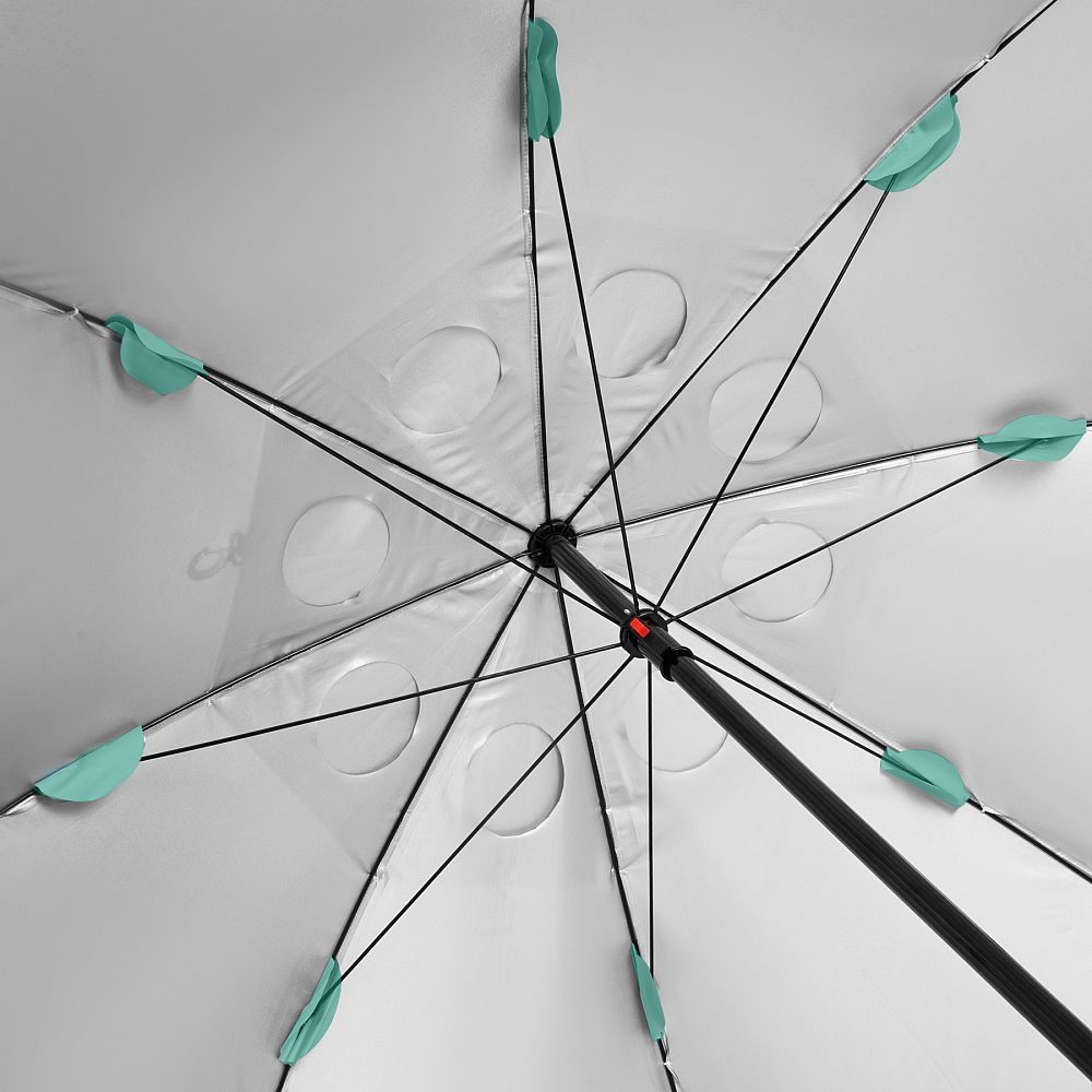 Slunečník je vybaven odnímatelnou podlahou o rozměrech 250 x 140 cm, která zajišťuje další komfort při používání. Ideálně izoluje od písku nebo vlhkého povrchu a vytváří čistý a bezpečný prostor pro odpočinek, hraní dětí nebo uložení věcí. V případě potřeby lze podlahu snadno odpojit – slunečník se pak stane klasickým stínidlem.
