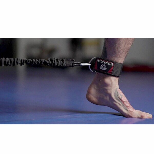 DBX BUSHIDO P3 DBX Foot Work je expandér, který se používá ke zlepšení rychlosti a dynamiky a techniky práce nohou. Odpor expandéru navíc napomáhá vybudovat návyk, kdy se po kopu vrací noha zpět na pozici. Na odporovou gumu je nasunut límec z velice odolné textilie, díky které nedochází k opotřebení expandéru během kontaktu s tělem cvičence. Konce jsou opatřeny karabinami pro připnutí k popruhům. Popruhy na nad kotníky jsou opatřeny suchým zipem.