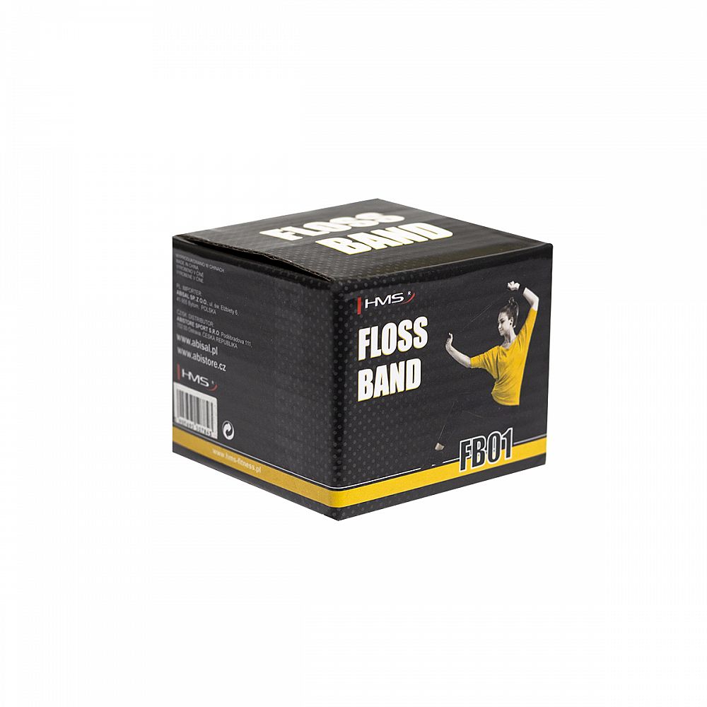 Gumová páska HMS FB01 se používá k rehabilitaci a takzvanému flossingu, kdy se kompresní páskou opakovaně omotává a povoluje postižené místo. Tato praktika pomáhá protahovat zkrácené svaly a těžko dostupné partie. Zmírňuje bolest, zvětšuje rozsah pohybu a napomáhá regeneraci po tréninku.