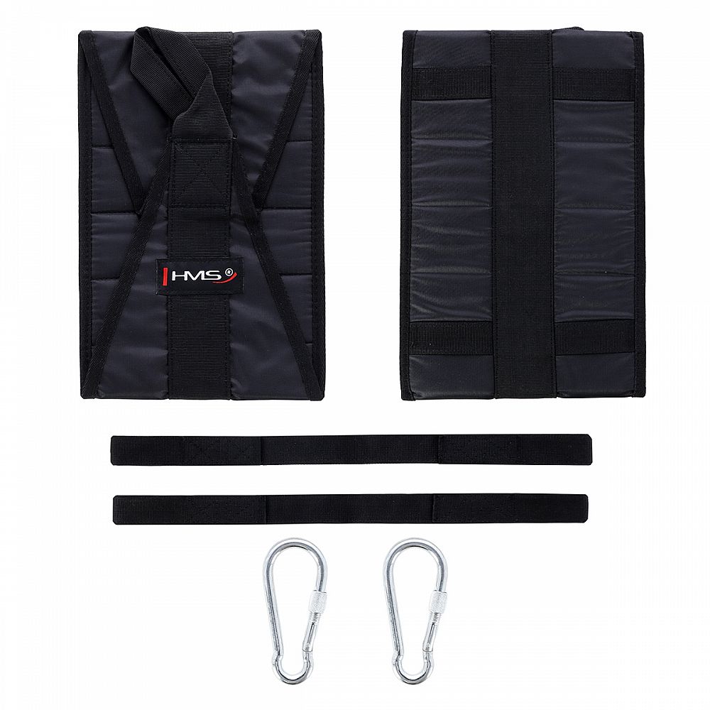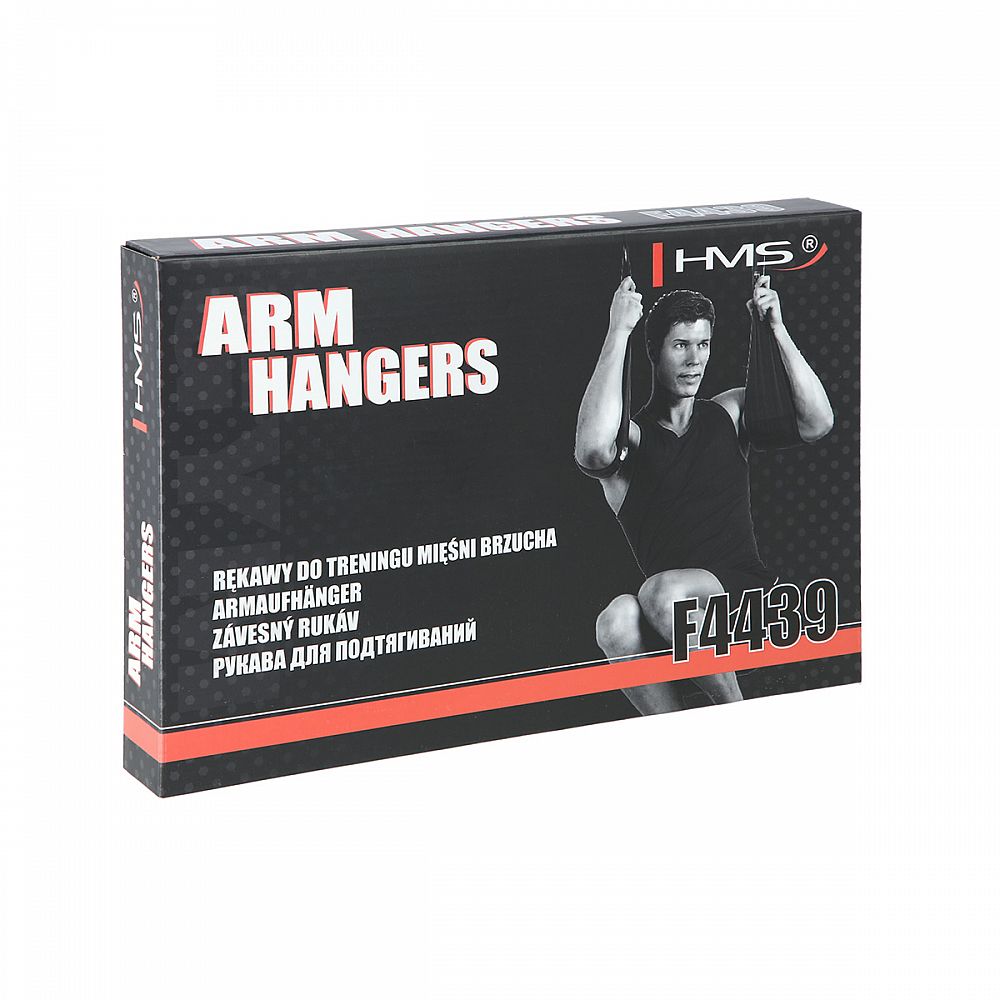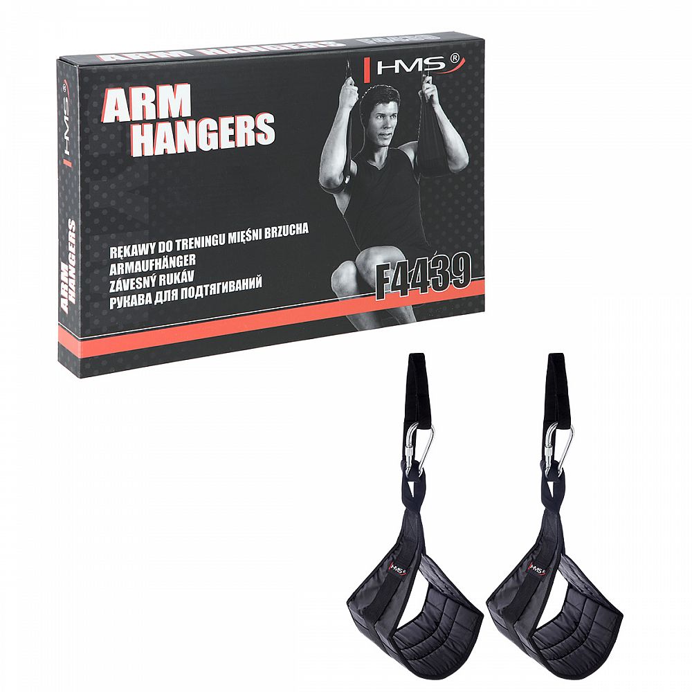 Arm Hanger HMS F4439 jsou závěsné rukávy, kteréí usnadňují trénink břišních svalů. Dodané dva rukávy pomocí karabiny zavěsíte na libovolnou tyč, poté jen provlečete paže rukávy a zahájíte trénink. Použité, kvalitní materiály jsou zárukou dlouhé životnosti. Nosnost 2 rukávů je až 100 kilogramů.