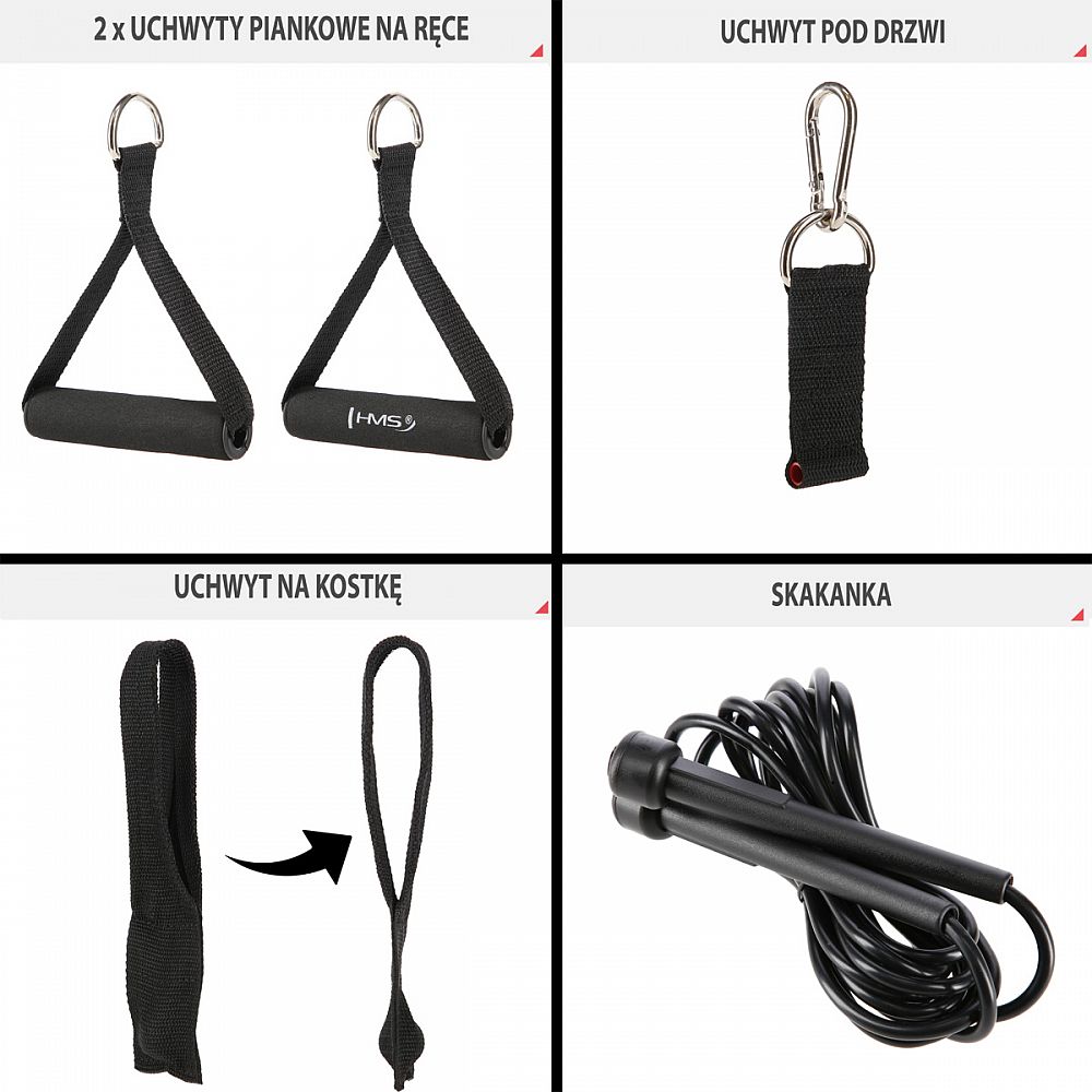 Sada byla pečlivě promyšlena a navržena tak, abyste mohli efektivně trénovat prakticky každou svalovou partii. TX02 obsahuje adaptér, díky kterému můžete expandéry připevnit ke dveřím a vytvořit si domácí horní nebo spodní "kladku".