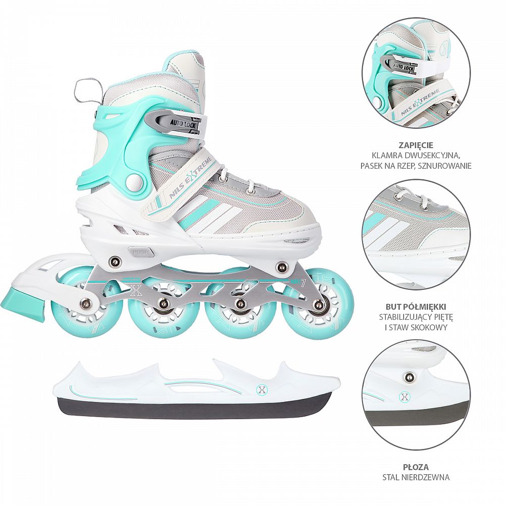 NILS Extreme NH18191 jsou kolečkové brusle s vyměnitelným nožem na led, které jsou určeny pro začínající a středně pokročilé uživatele.