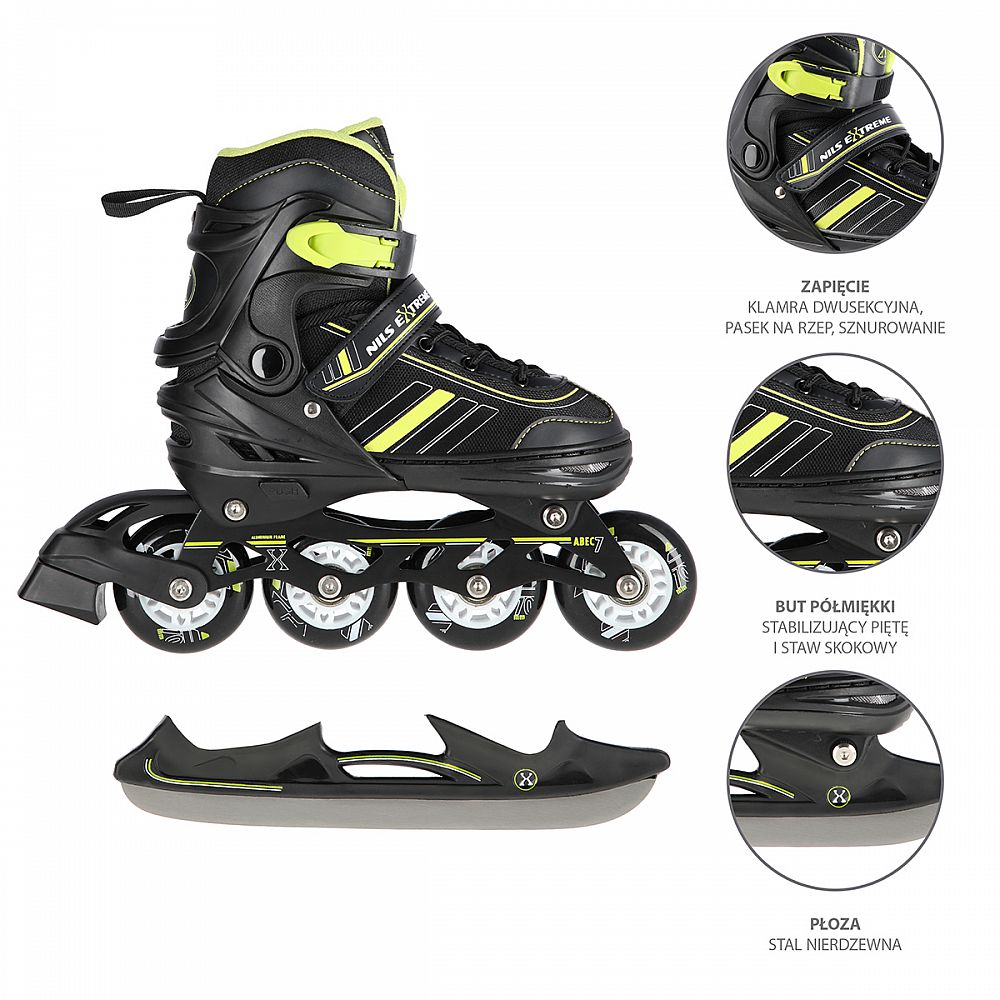 NILS Extreme NH18191 jsou kolečkové brusle s vyměnitelným nožem na led, které jsou určeny pro začínající a středně pokročilé uživatele.
