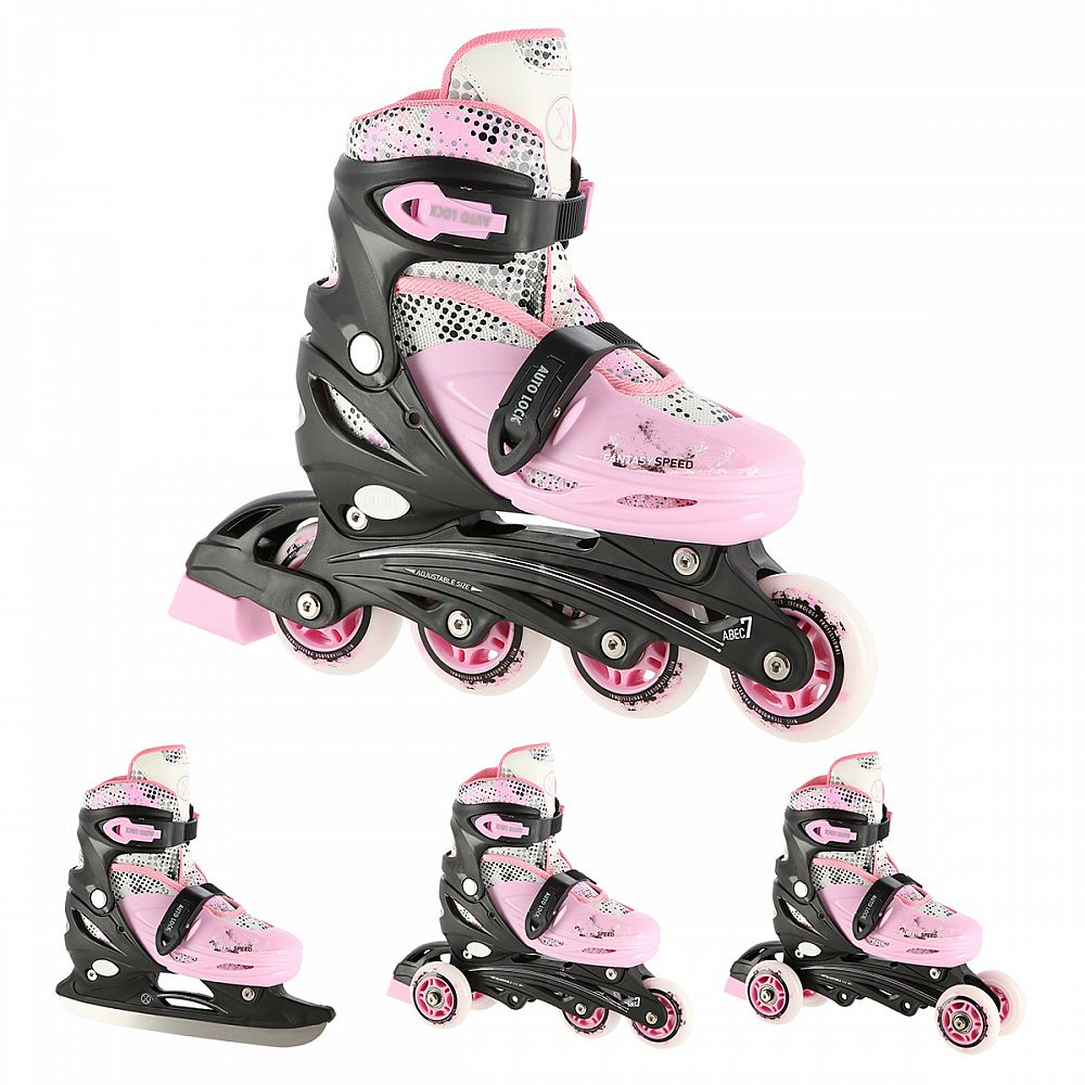 NILS Extreme NH18331 jsou kolečkové brusle 4v1 s variabilním podvozkem a s vyměnitelnými nožy na led, které jsou určeny pro začínající a středně pokročilé uživatele.