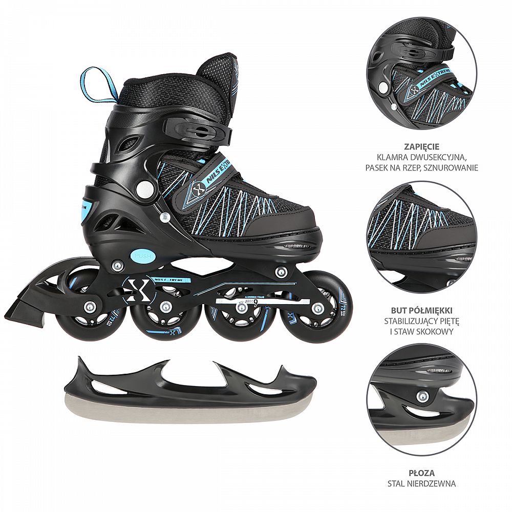 Popis: Kolečkové brusle NILS Extreme NH11912 A 2v1, modré