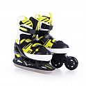 Dětské roztahovací brusle se speciální duální konstrukcí pro celoroční rekreační bruslení. Konstrukční systém umožňuje záměnu zimních bruslí za podvozek s kolečky. Jednoduchým povolením dvou šroubů přeměníte zimní brusle na kolečkové inline brusle a naopak.