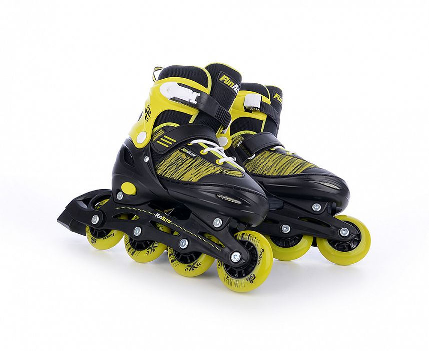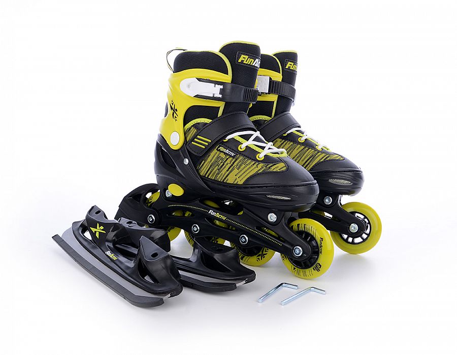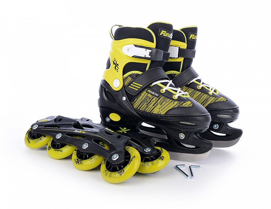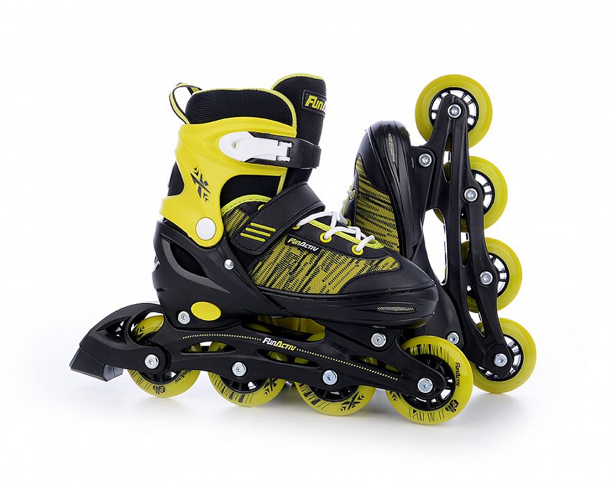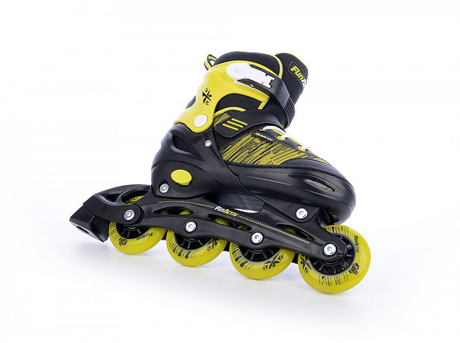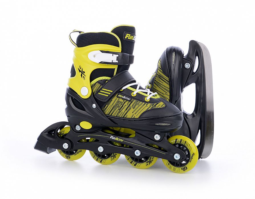 Dětské roztahovací brusle FunActiv se speciální duální konstrukcí pro celoroční rekreační bruslení. Konstrukční systém umožňuje záměnu zimních bruslí za podvozek s kolečky - tzn. umožňuje jednoduchou přestavbu na in-line brusle. Měkká rychleschnoucí výstelka zajišťuje pohodlnost dětské nohy. Předností bruslí je jednoduchá nastavitelnost velikosti o 3 čísla snadným stisknutím tlačítka v boční části skeletu.