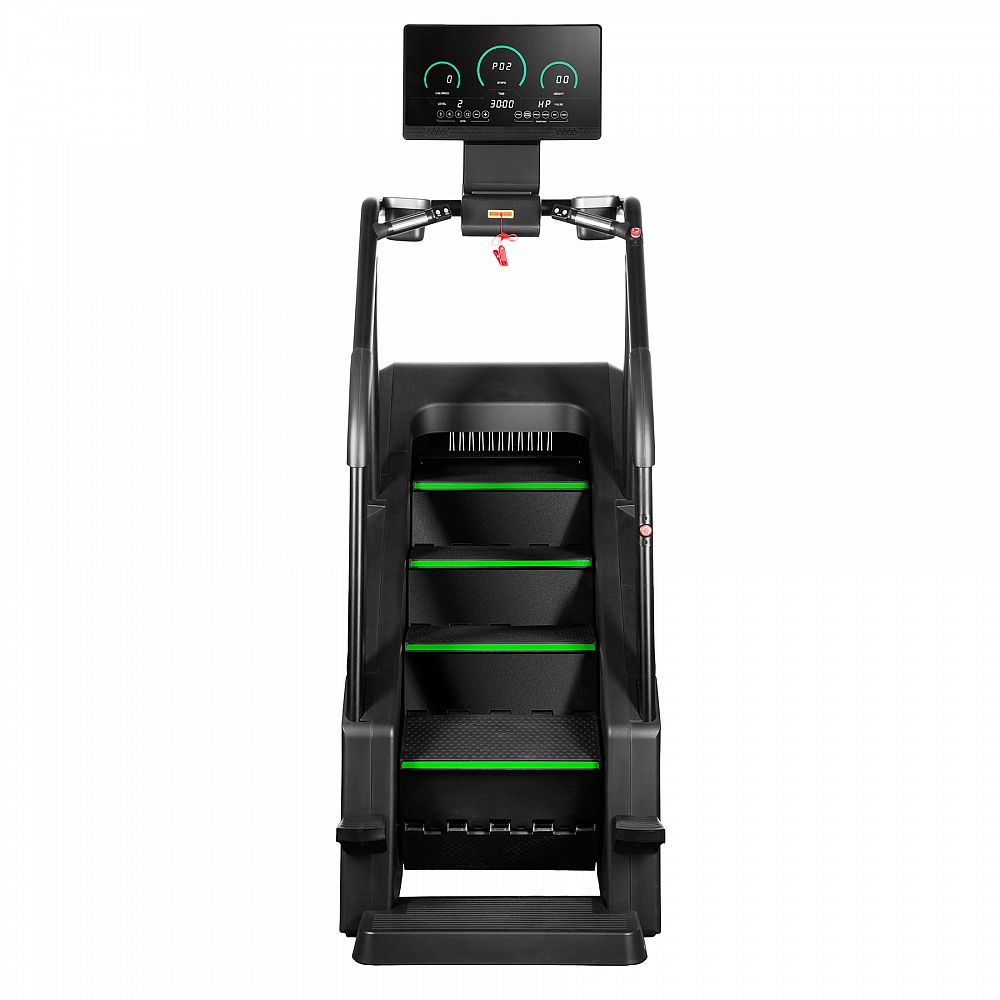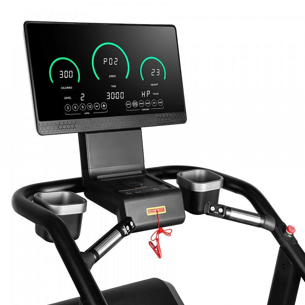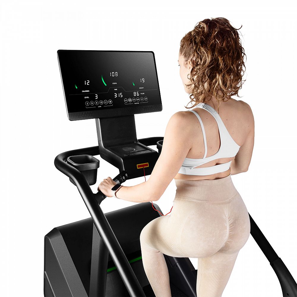 Stroj má robustní konstrukci, která zaručuje stabilitu při intenzivním tréninku. Protiskluzové schody pod úhlem 35 stupňů zajišťují pohodlí a bezpečnost při používání. Samoblokovací systém schody automaticky zastaví, pokud je zatížení menší než 30 kg.