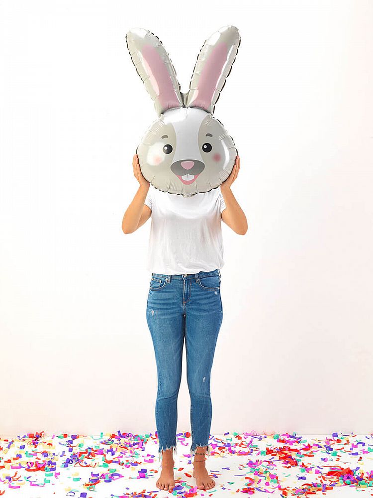 Foliový balónek ve tvaru hlavy zajíce. Fóliové balónky jsou vhodným doplňkem výroční, novoroční i narozeninové výzdoby.