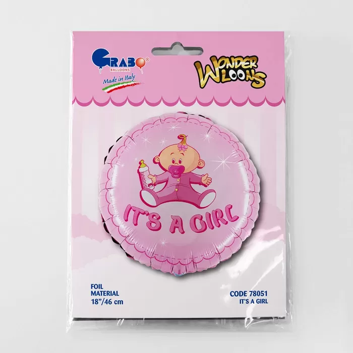Fóliový balónek ve tvaru kruhu s potiskem miminka a nápisem "It´s a girl!".