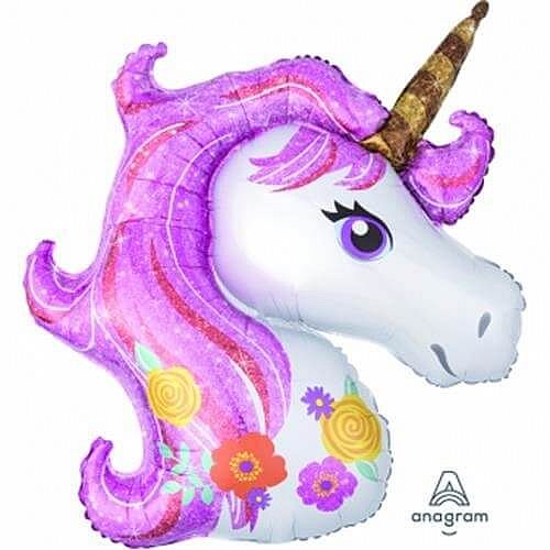 Popis: Foliový balónek Jednorožec hlava třpytivá 83 x 73 cm