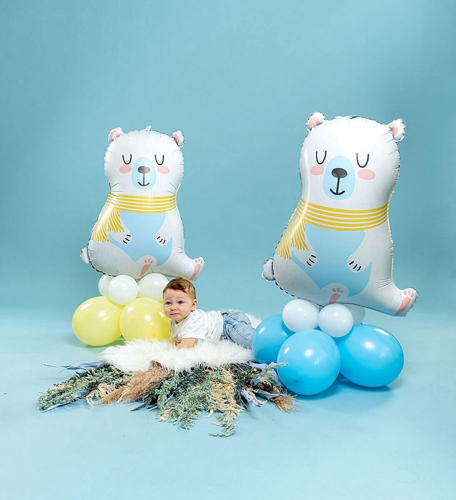 Foliový balónek ve tvaru Ledního medvěda v bílé barvě se světle modrým bříškem, který svojí roztomilostí potěší jenom pro radost i na narozeniny. Zvířátkový motiv se stává dnes čím dál tím oblíbenější.