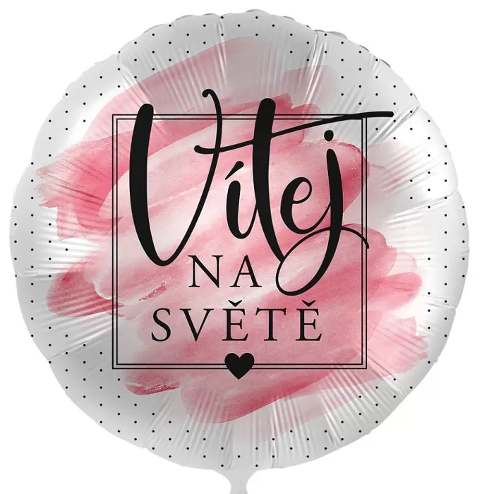 Popis: Fóliový balónek Vítej na světě Růžový CZ - 43cm