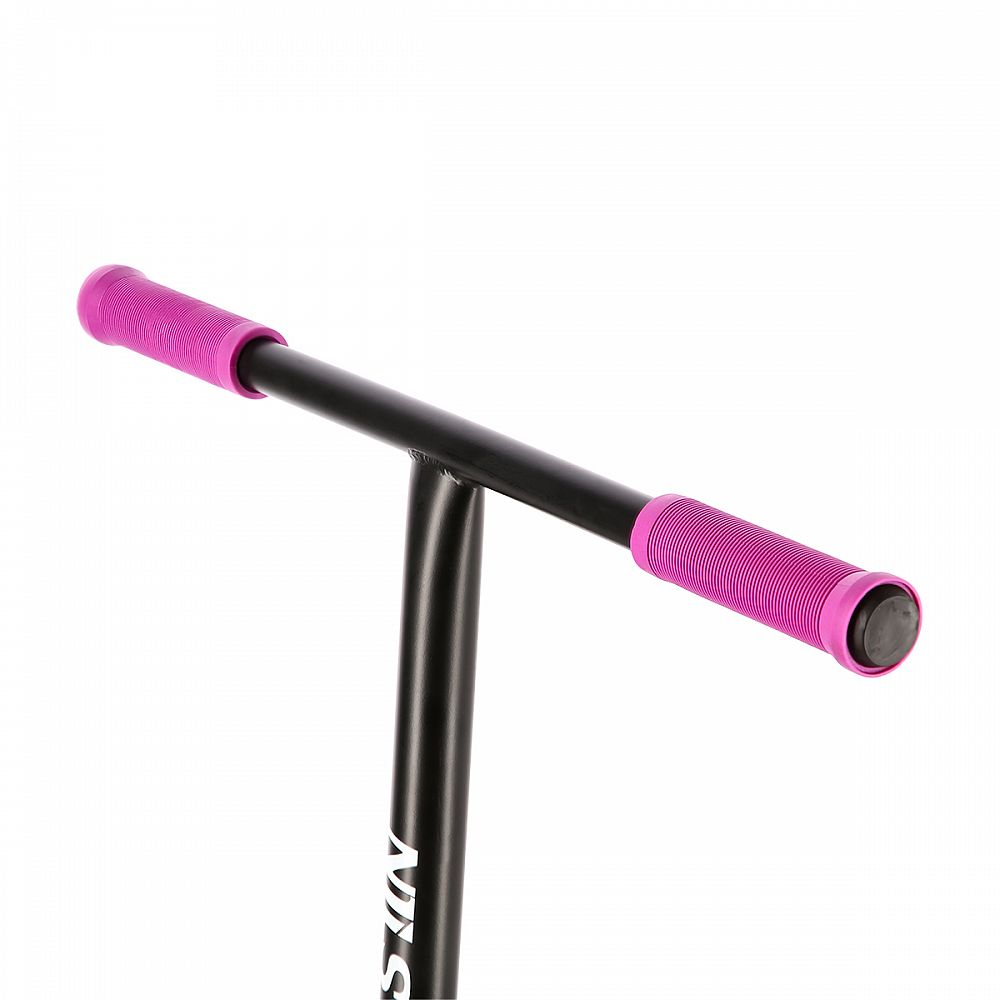 Freestylová koloběžka nemá žádný skládací mechanismus ani systém nastavení výšky řídítek - tyto typy řešení by mohly oslabit celou konstrukci, což samozřejmě není žádoucí u produktu, kde je odolnost zásadní.