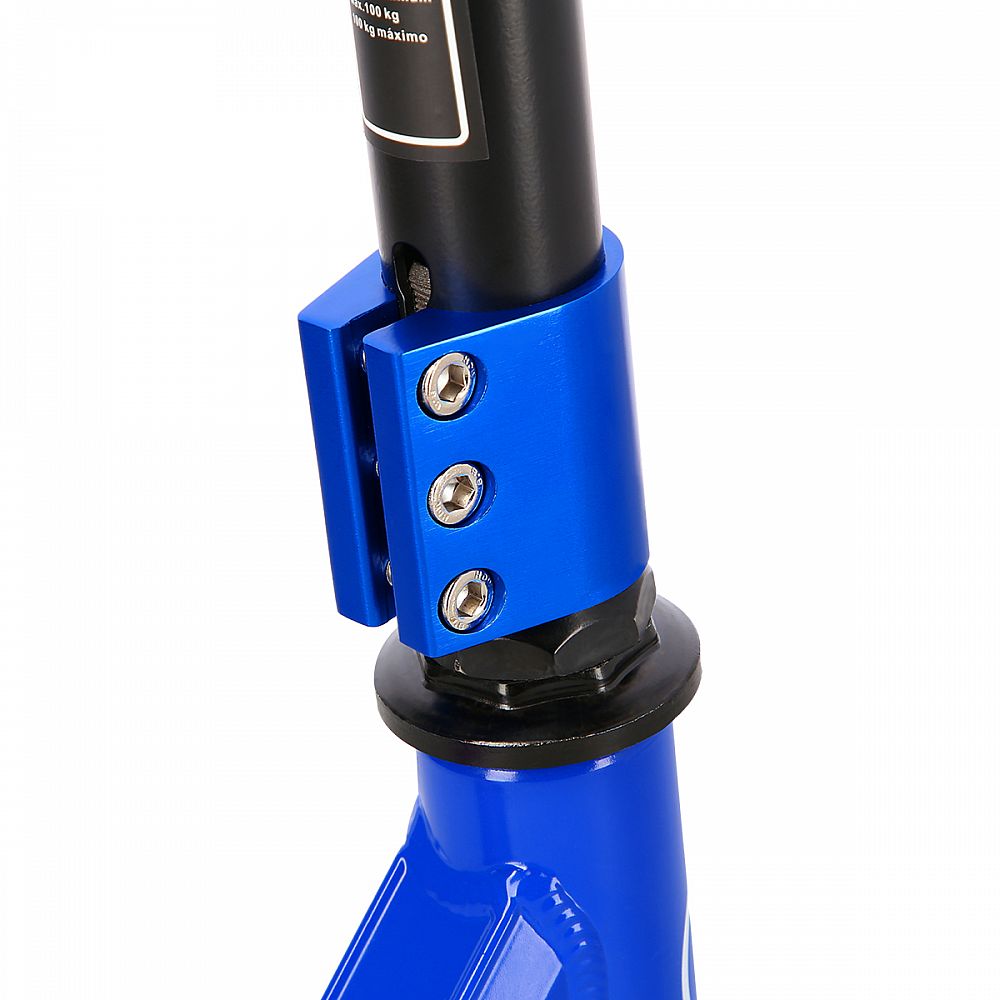 Freestylová koloběžka nemá žádný skládací mechanismus ani systém nastavení výšky řídítek - tyto typy řešení by mohly oslabit celou konstrukci, což samozřejmě není žádoucí u produktu, kde je odolnost zásadní.