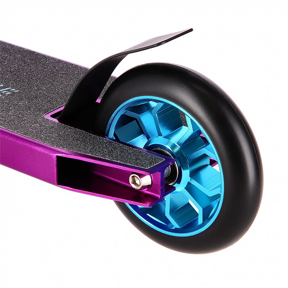HS111 je ideální pro asfaltové povrchy, skateparky a chodníky. Polyuretanová kolečka s hliníkovým středem mají průměr 110 mm a jsou osazena ložisky ABEC 9, tato kombinace zaučuje dlouhou jízdu bez větší námahy. Zadní blatník slouží jako nášlapná brzda (Flex Fender), která zajišťuje bezpečné používání a umožňuje koloběžku snadno zastavit. Řídítka jsou k ocelové, bezzávitové vidlici připevněny pomocí 4-šroubové svorky, lze je tak snadno vyměnit. Robustní deck má dvě příčky a tři komory. Gumové gripy pohlcují nežádoucí vibrace.