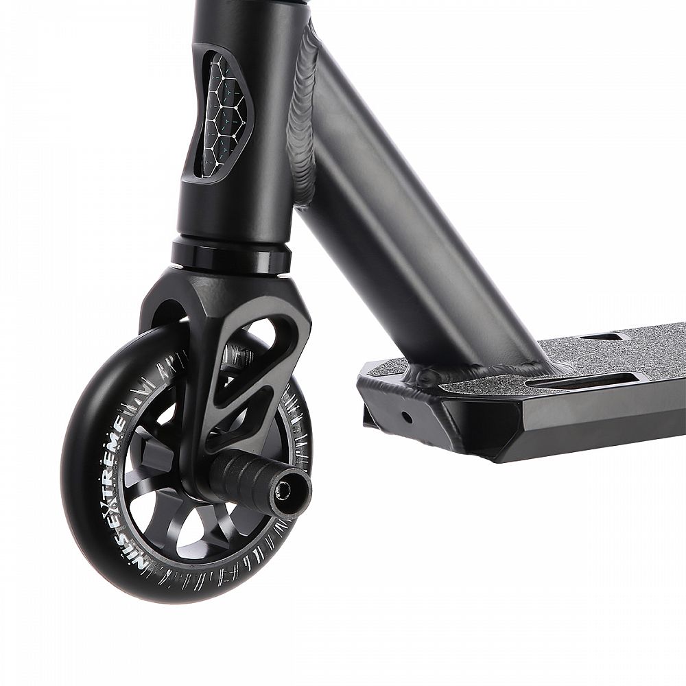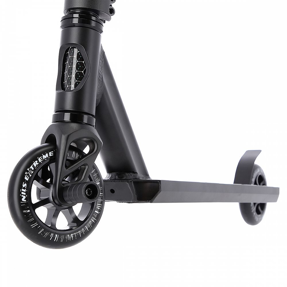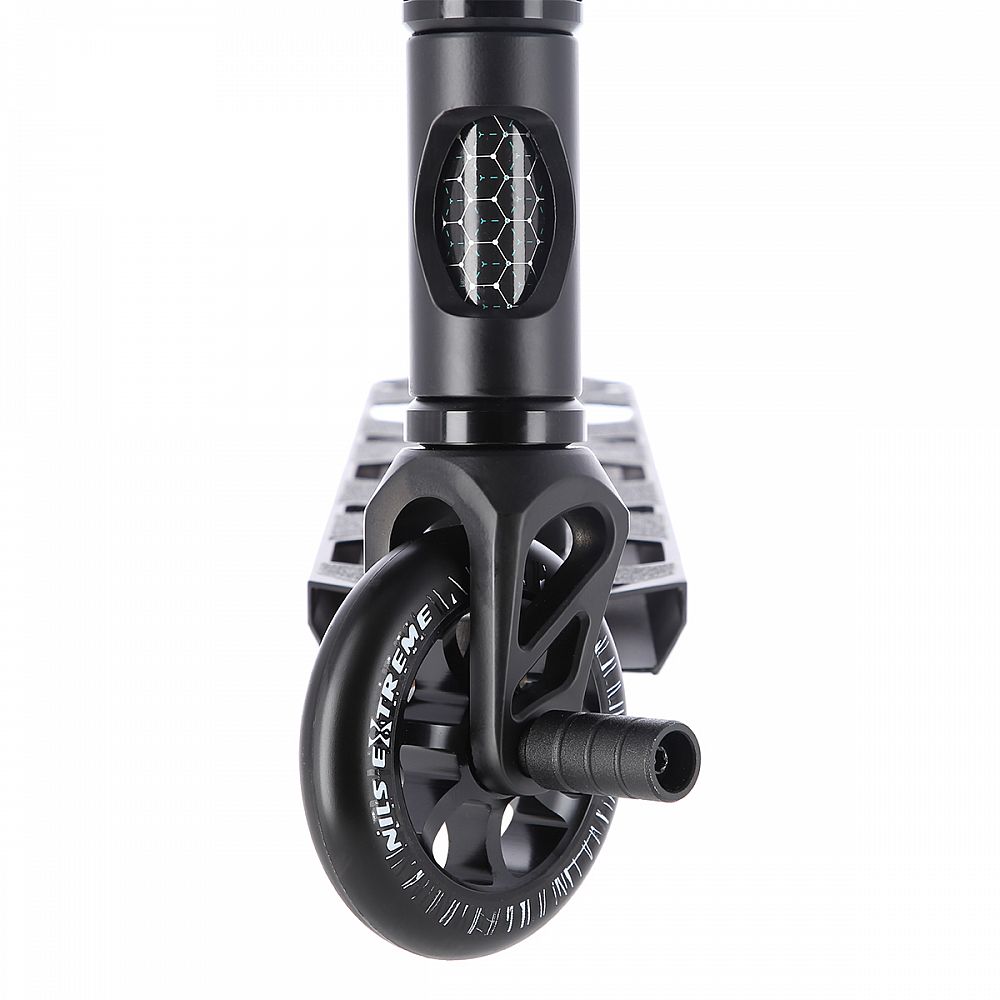 Přední vidlice je z výroby opatřena PEGem pro sjíždění zábradlí a zídek. Model HS200 Pro patří k vrcholovým modelům freestyle koloběžek z nabídky NILS Extreme, který je zárukou mnoha hodin zábavy.
