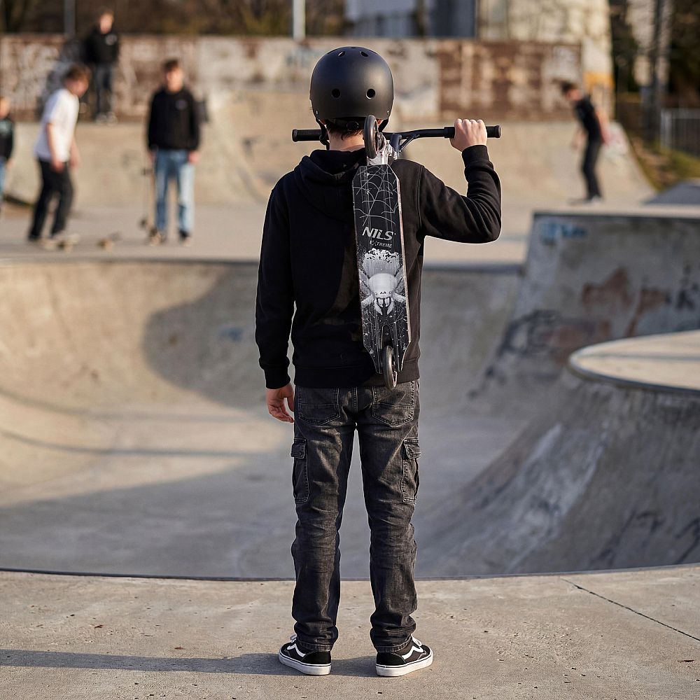 Díky pevné konstrukci, kvalitním komponentům a výraznému designu je NILS Extreme HS221 SPIDER ideální volbou pro jezdce, kteří chtějí začít s freestyle jízdou nebo zdokonalovat své triky ve skateparku.