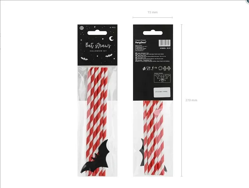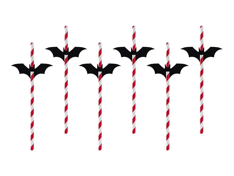 Papírová brčka s motivem Netopýrů, idální dekorace na halloweenskou párty.