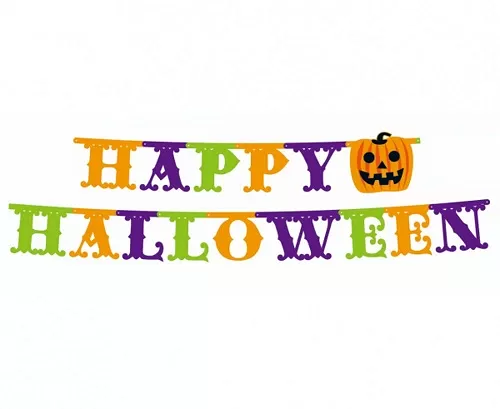 Papírový nápis Happy Halloween vhodný pro výzdobu místnosti na halloweenský večer. Skvěle vám v kombinace s dalšími dekoračními prvky pomůže vytvořit tu správnou atmosféru.