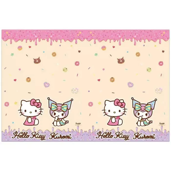 Plastový ubrus Hello Kitty a Kuromi je ideální volbou pro tematické oslavy, narozeniny nebo dětské párty s motivem oblíbených postaviček. Ubrus je součástí kolekce Hello Kitty a Kuromi a nabízí roztomilý design v krémovém provedení s fialovými a růžovými detaily, které dodají výzdobě jemný a hravý nádech. Díky plastovému materiálu je ubrus praktický na použití i úklid – snadno se utírá a rychle se čistí, což je ideální pro oslavy s dětmi. Vzor s postavičkami Hello Kitty a Kuromi je výrazný a zároveň sladký, takže se hodí pro dívčí párty, tematické oslavy nebo jako doplněk do dětského pokoje. Vytvořte stylovou a roztomilou výzdobu s plastovým ubrusem Hello Kitty a Kuromi a doplňte ji o další produkty z kolekce pro kompletní party set. Balení: 1 ksVelikost: 120 x 180 cm