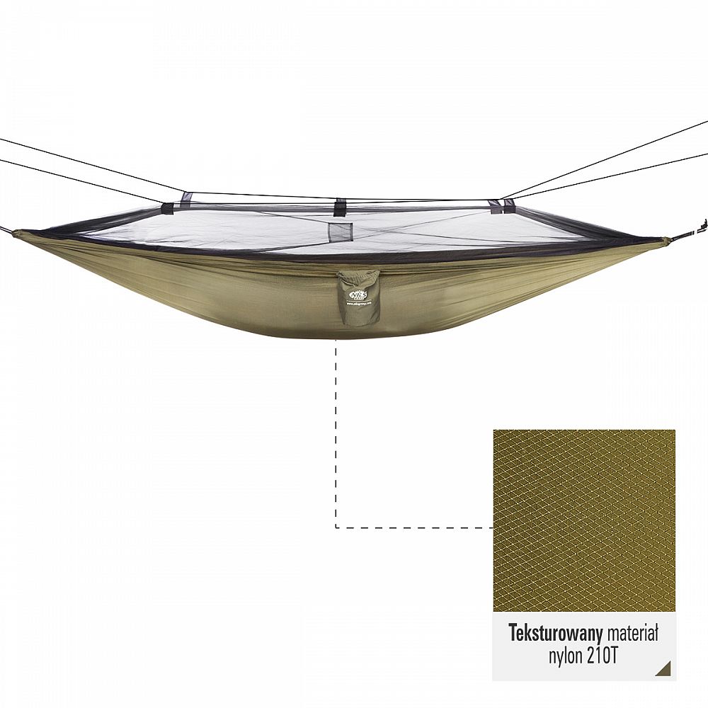 Houpací síť je vyrobena z nylonu 210T, který je velice odolný, trvanlivý a lehký. Hamaka po zabalení do obalu dosahuje rozměru 24 x 13 centimetrů a hmotnost je 690 gramů, takže si najde místo v každém batohu. Nylon je navíc odolný vůči vlhkosti a velice rychle schne. Nosnost hamaky je 180 kilogramů.