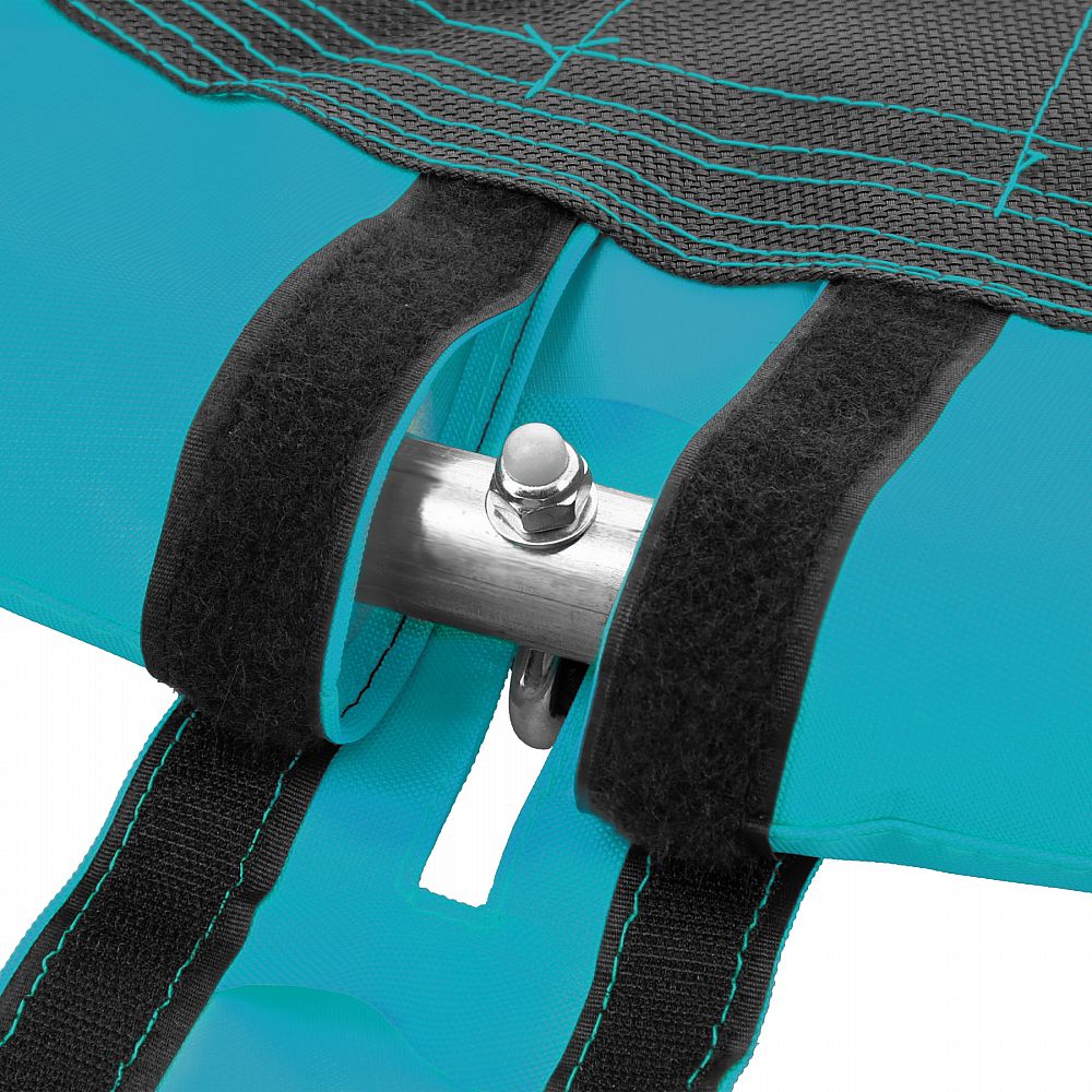 Sedací plocha je vyrobena z kombinace polypropylenu a polyesteru v úpravě 600D Oxford, takže je bezpečná, pohodlná a odolává povětrnostním vlivům. Díky tomu může zábava trvat mnoho hodin. Rám je chráněn speciální pěnou. Lana jsou z velmi odolného polyethylenu. Vše pro maximální bezpečnost, komfort a odolnost vůči dešti a sněhu. To znamená, že není nutné uklízet vybavení, jakmile začne pršet.
