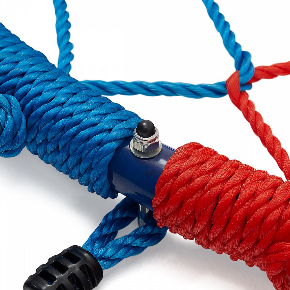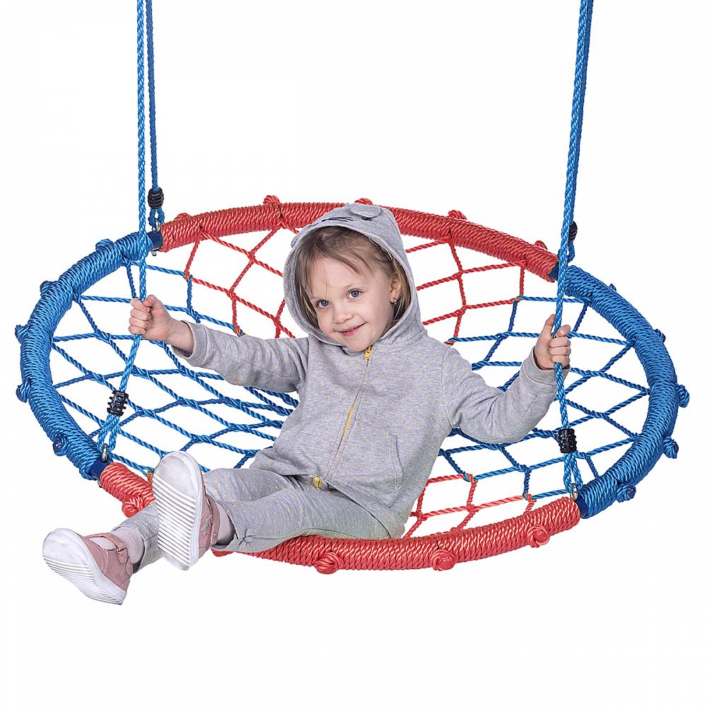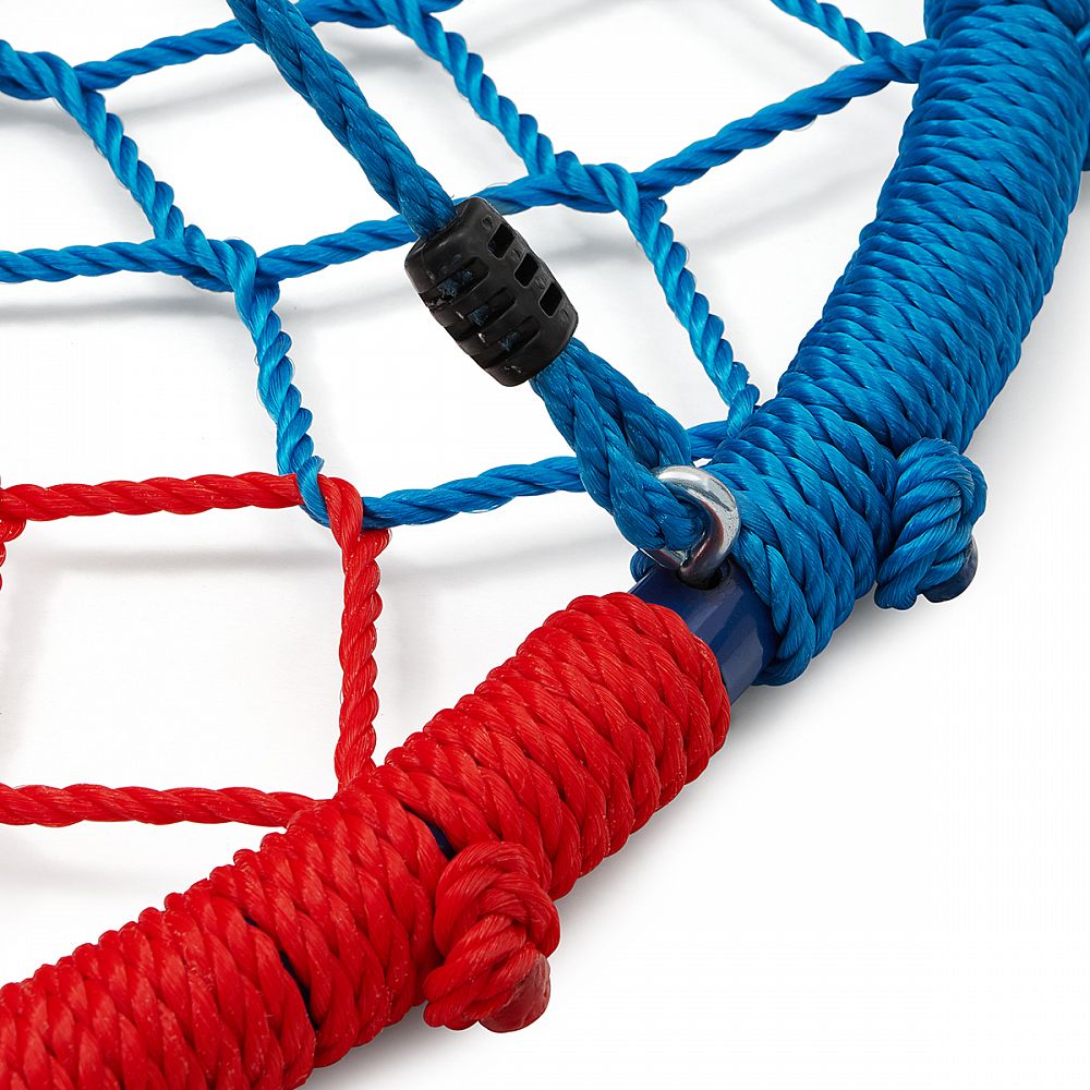 Rám o průměru 100 centimetrů je vyroben z ocelové kulatiny o průměru 32 milimetrů, která je pro maximální bezpečnost omotána lanem. Polyetylénový výplet modelu NB5039 má průměr 6,5 milimetru a je maximálně odolný vůči povětrnostím vlivům jako je déšť a sníh, hnízdo tak nemusíte schovávat když zrovna začne pršet. Nosná, polyetylénová lanka mají průměr 10 milimetrů a délku 180 cm. Když tyto vlastnosti zkombinujeme tak získáme prostornou houpačku s nosností 180 kilogramů, na které se vyřádí i více dětí najednou.