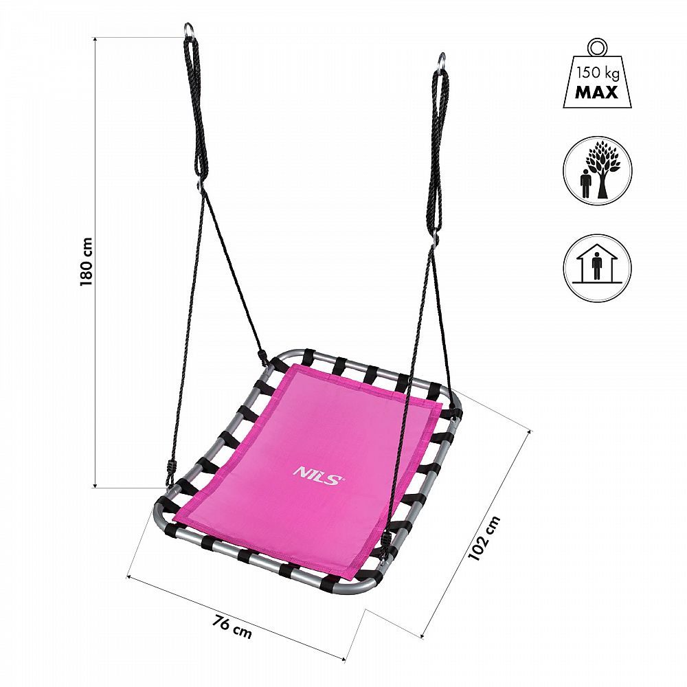 Obdelníková houpačka typu čapí hnízdo NILS Camp NC5045 růžová