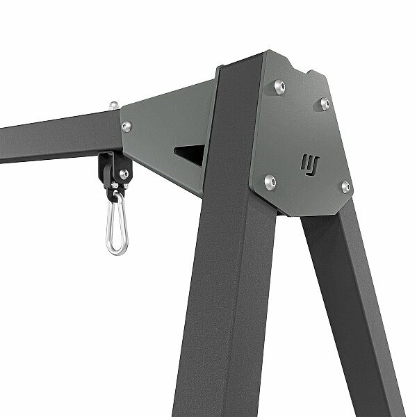 Nabízený ocelový rám představuje odolnou a bezpečnou konstrukci. Profily 60x60x2 mm z vysoce kvalitní oceli zaručují bezpečné používání. Stabilitu rámu navíc zajišťuje výztuha mezi nohama a příčkou v podobě vhodně zakřiveného upevňovacího prvku. Práškově lakovaná ocel navíc zajišťuje vysokou odolnost vůči povětrnostním podmínkám - například dešti, větru, nízkým a vysokým teplotám - a mechanickému poškození včetně poškrábání.