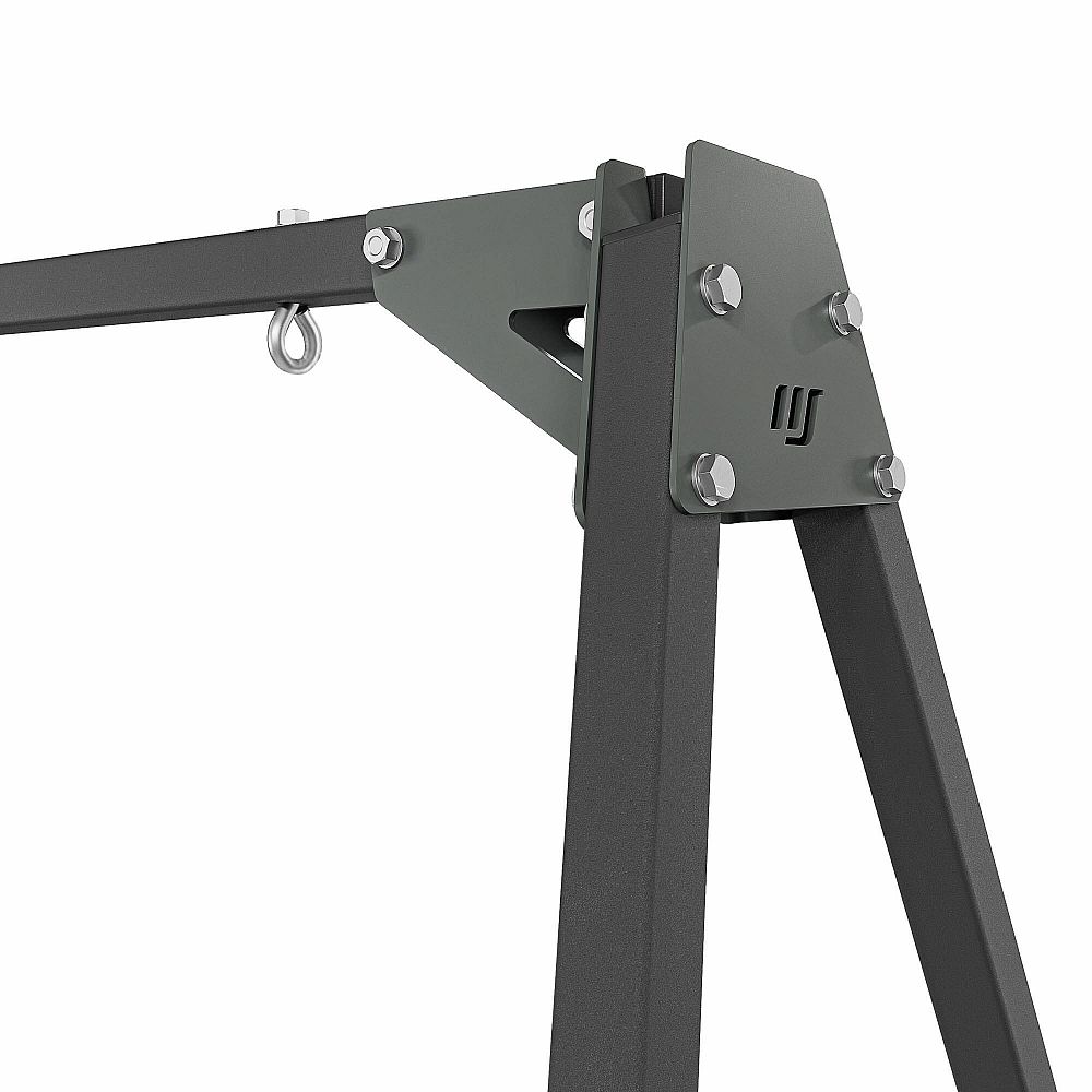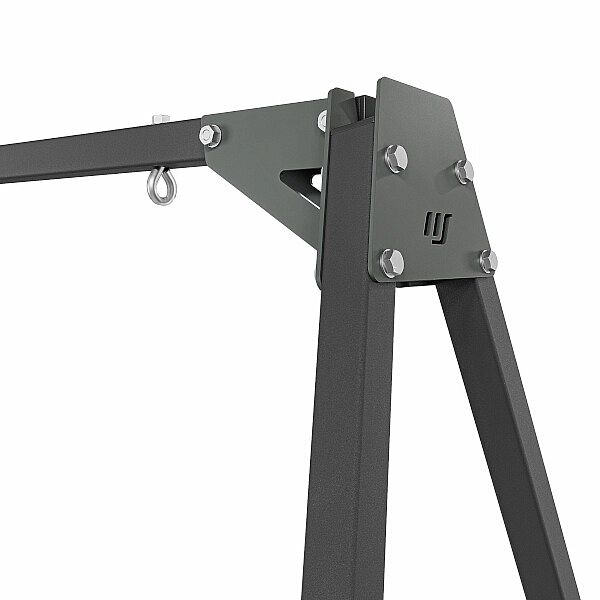 Toto řešení také umožňuje pohodlné využívání různých příslušenství. Jeden stojan můžete bez problémů používat jako zahradní houpačku i jako držák na boxovací pytel.