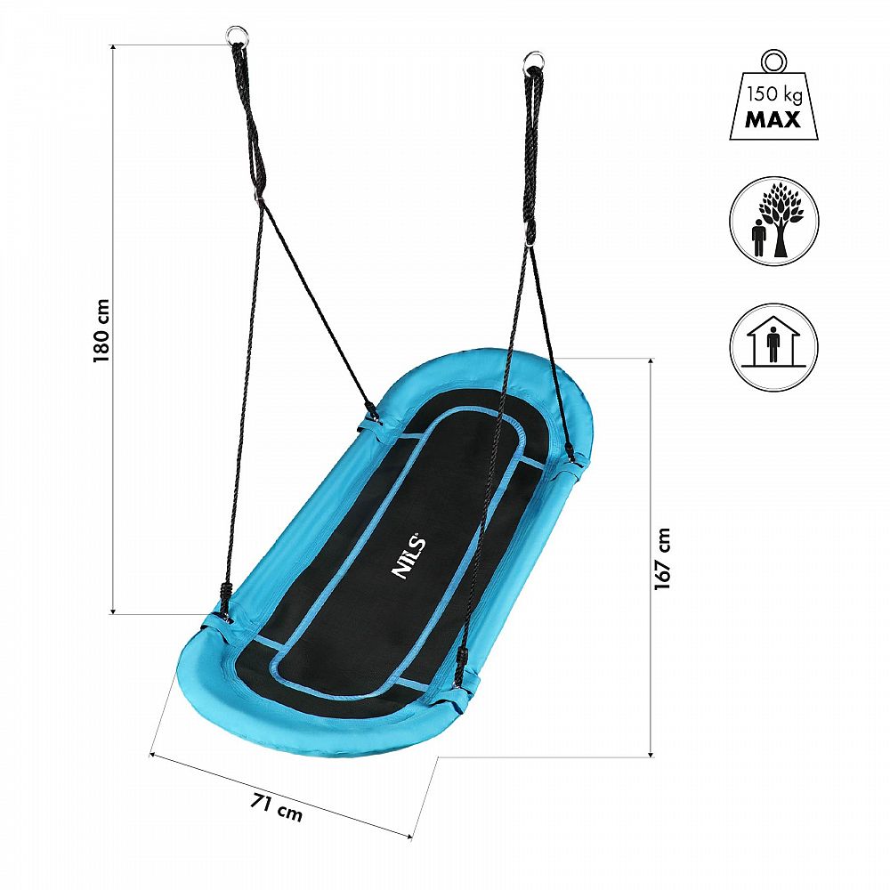 Popis: Oválná houpačka typu čapí hnízdo NILS Camp NB5044 modrá