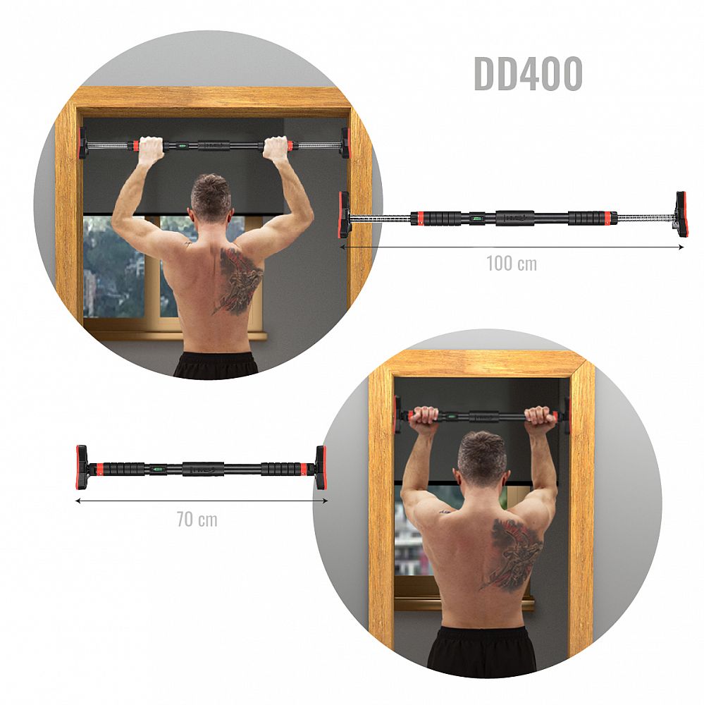 Hrazda DD400 umožňuje provádět širokou škálu cviků. Podle toho, zda je hrazda umístěna ve výšce hlavy, nebo kolen, lze trénovat přítahy, kliky, dipy a tlaky, což vám umožní měnit trénink a dosáhnout požadovaných výsledků. Díky němu zvýšíte svou sílu, vytrvalost a zlepšíte celkovou kondici.
