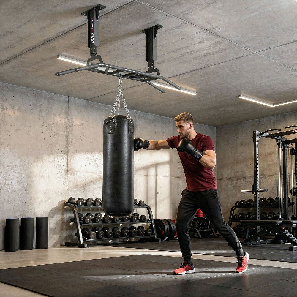 - stropní montáž – vhodnou tam, kde je potřeba ušetřit místo nebo získat větší rozsah pohybu při cvičení.