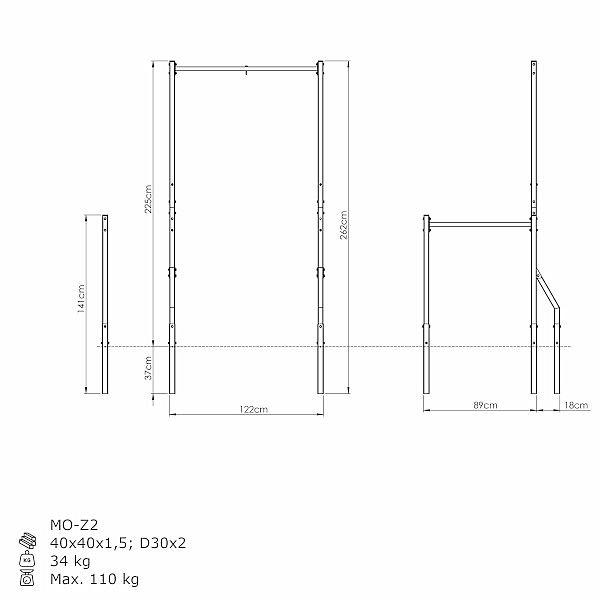 Hrazda je umístěna ve výšce 225 cm a poskytuje pohodlný úchop. Díky tomu můžete provádět širokou škálu silových a posilovacích cviků pro svaly horní poloviny těla. Jedná se o řešení pro začátečníky i pokročilé uživatele!