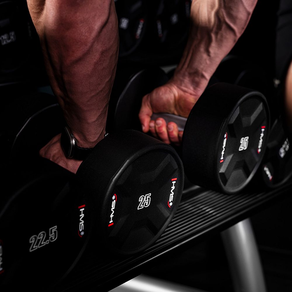 Jednoruční činky HMS HPC jsou vyrobeny z ocelového jádra potaženého litým polyuretanem (CPU). HPC jsou vybavením vytvořeným s ohledem na nejnáročnější uživatele. Výjimečná odolnost, estetické provedení a pokročilé vlastnosti z nich činí ideální volbu pro ty, kteří očekávají spolehlivost během intenzivních tréninků.