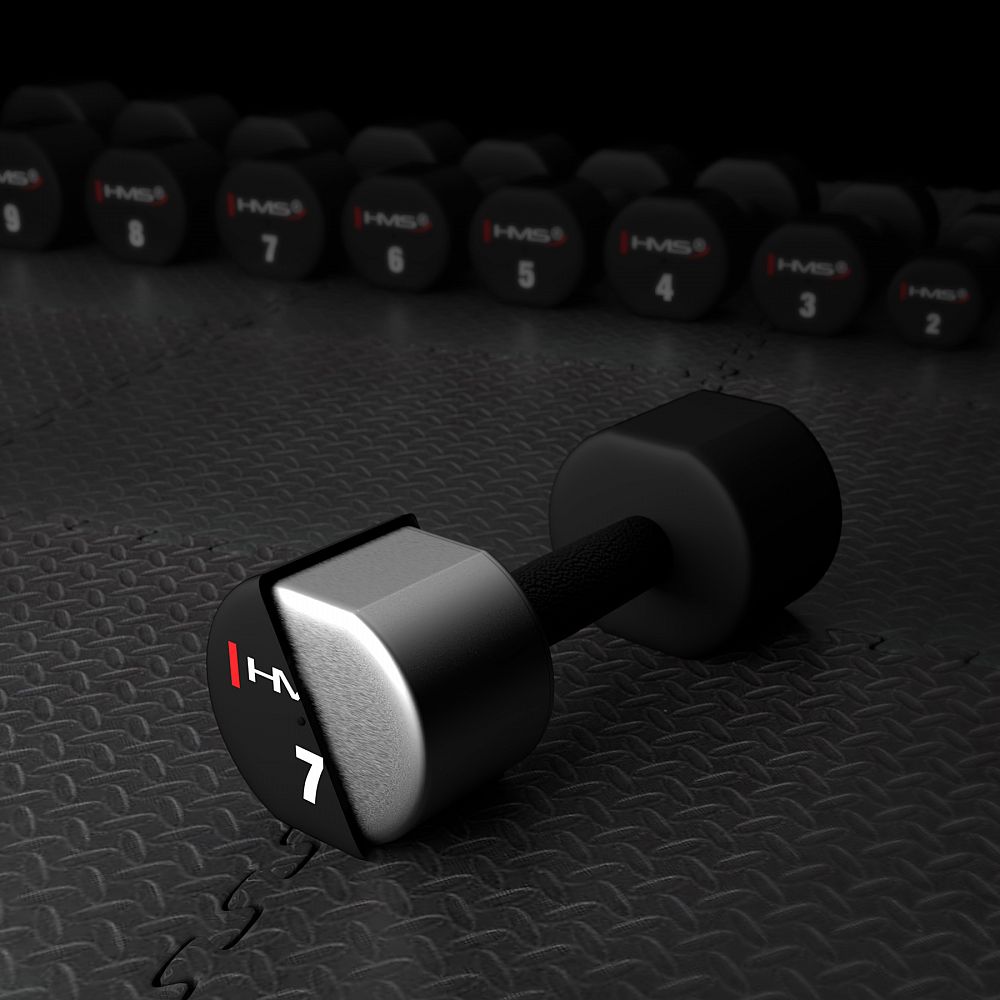 Činky HPT od HMS jsou pokryty černou vrstvou termoplastického polyuretanu (TPU), což je materiál známý svou pružností a zároveň vysokou tvrdostí. Díky tomu jsou odolné vůči otřesům, poškrábání a nárazům, což zaručuje dlouhou životnost bez ztráty kvality. Polyuretanový povrch je bez zápachu a chrání podlahu před poškozením, čímž minimalizuje riziko škrábanců nebo hluku během cvičení.