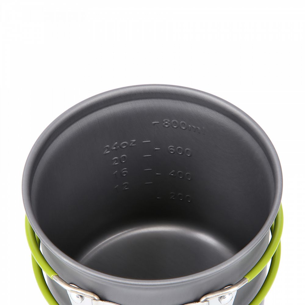 Nádobí je vyrobeno z pevného eloxovaného hliníku odolného proti poškození. Jsou velmi odolné a lehké. Hrnce i misky jsou navrženy tak, aby se do sebe snadno vešly, což usnadňuje jejich balení a přepravu. Perfektní řešení pro ty, kteří si chtějí vychutnat kouzlo vaření v přírodě bez kompromisů. Nádoby mají navíc sklopné rukojeti pokryté izolací, která zabraňuje náhodnému popálení při odkládání nádobí z hořáku. Sada obsahuje i praktický vak pro uskladnění nádobí.